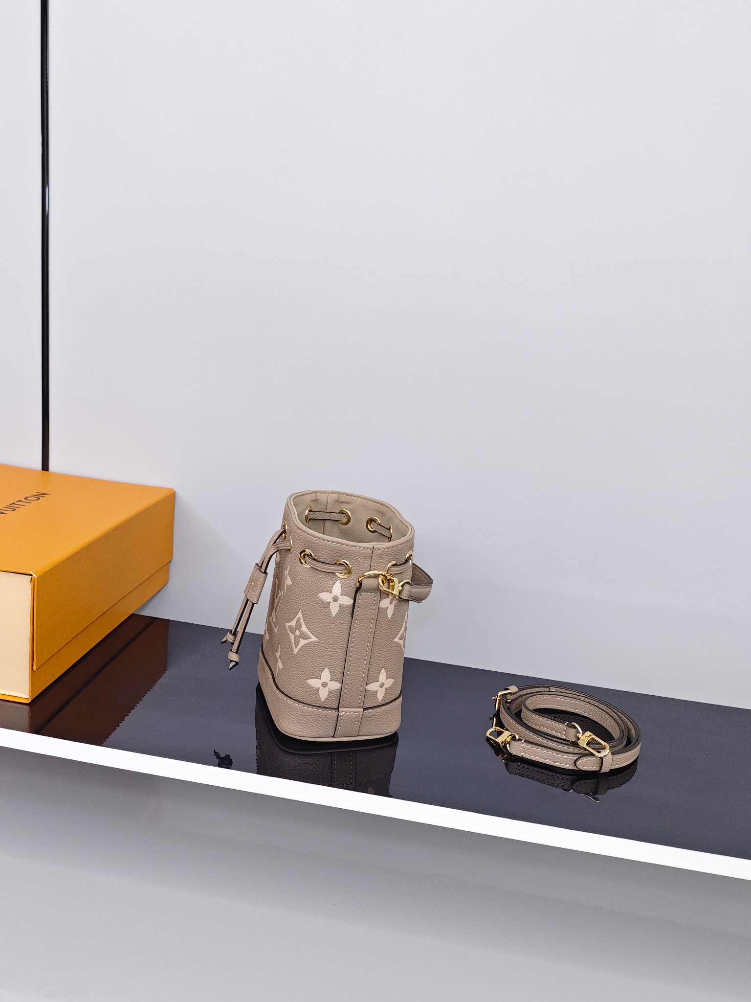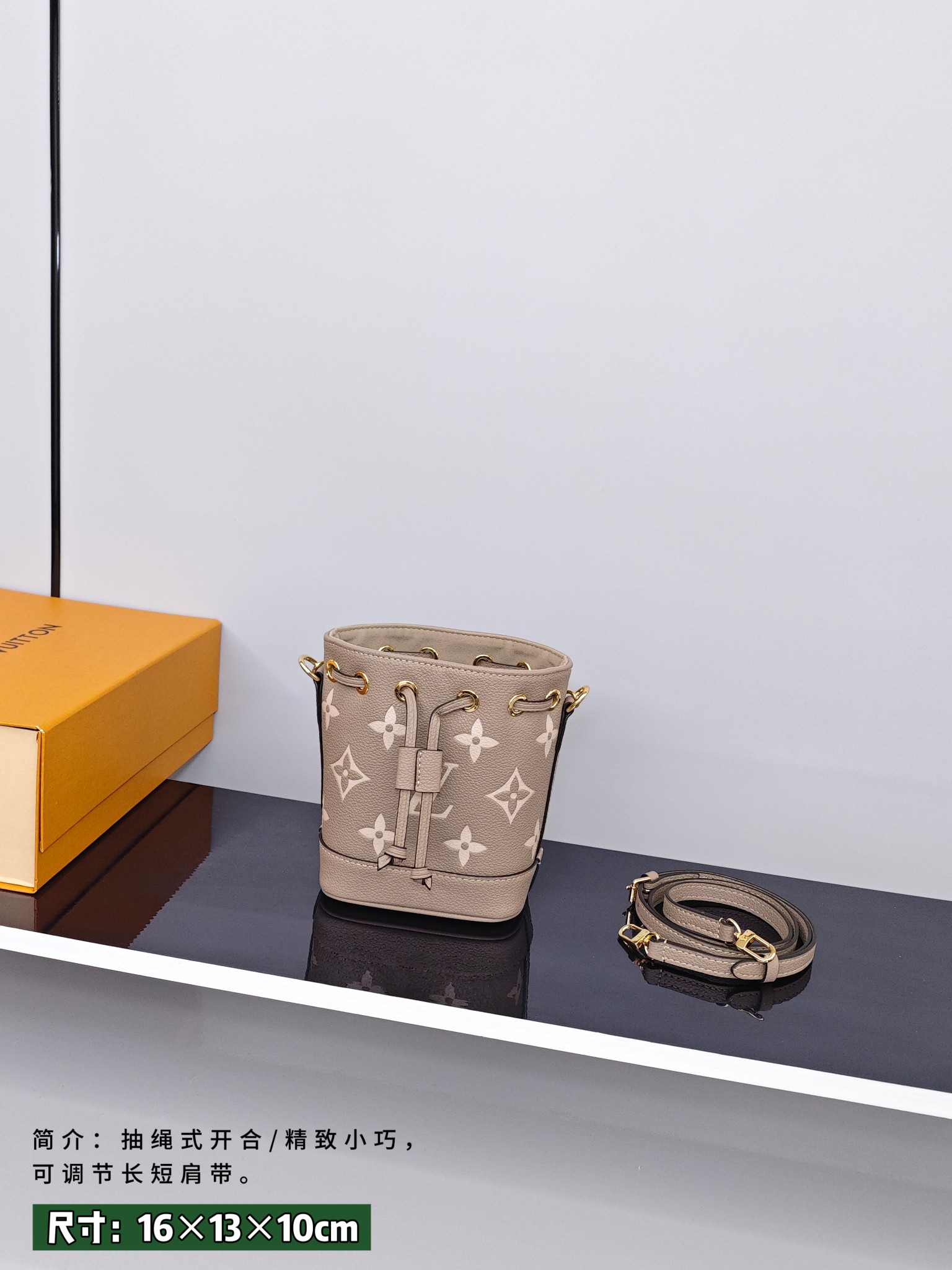 Lv nano小水桶包💰240 尺寸:16×13×10cm 简介:抽绳式开合,内部空间可放下手机充电宝等日常随身小物品,搭配可拆卸长肩带,可手提/可斜挎背。