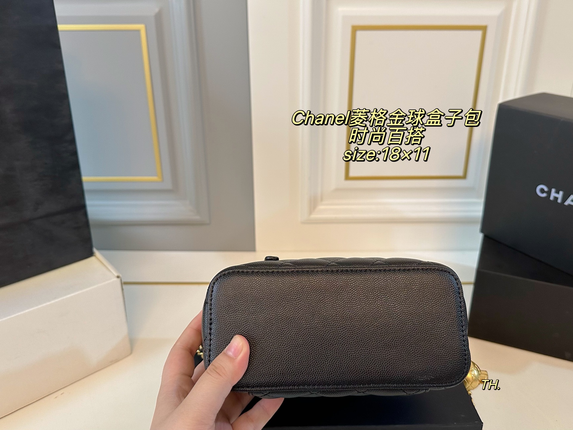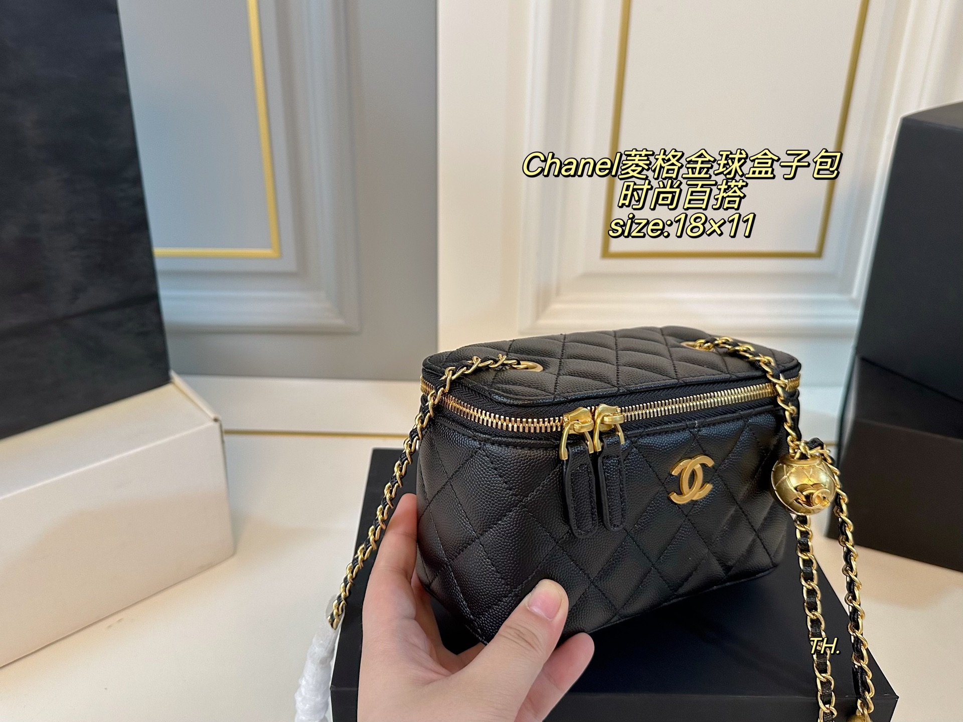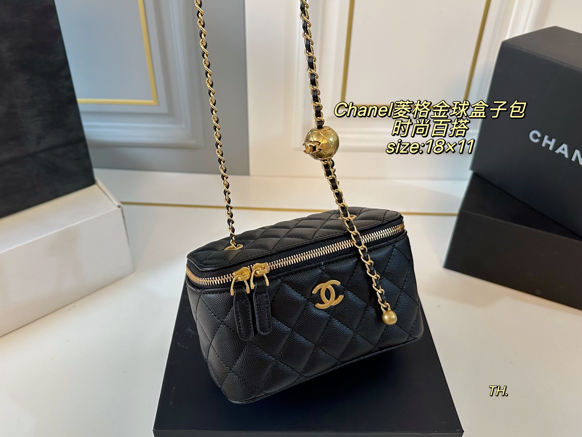 💰260 鱼子酱(折叠盒) size:18×11 CHANEL 香奈儿菱格金球盒子包💕 金色链条和金球的点缀✨ 增添一抹时尚感,颜值在线! 包身轻便,精巧别致~ 时髦又好看,凹造型神器❗️