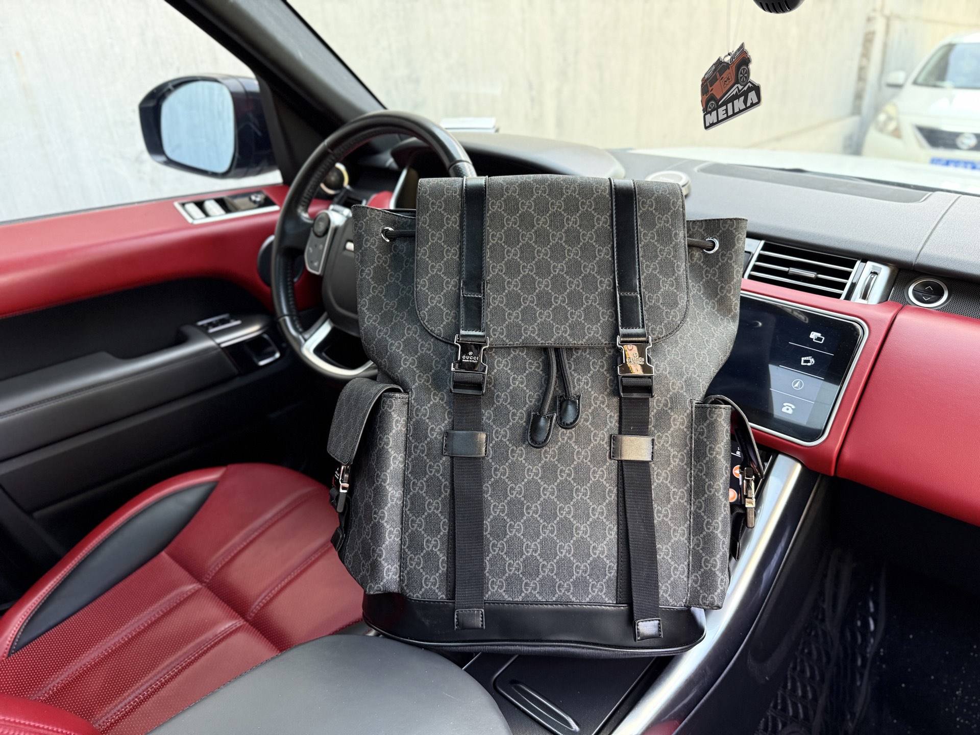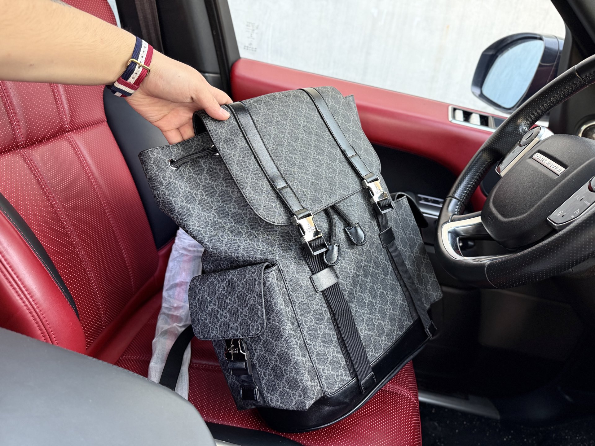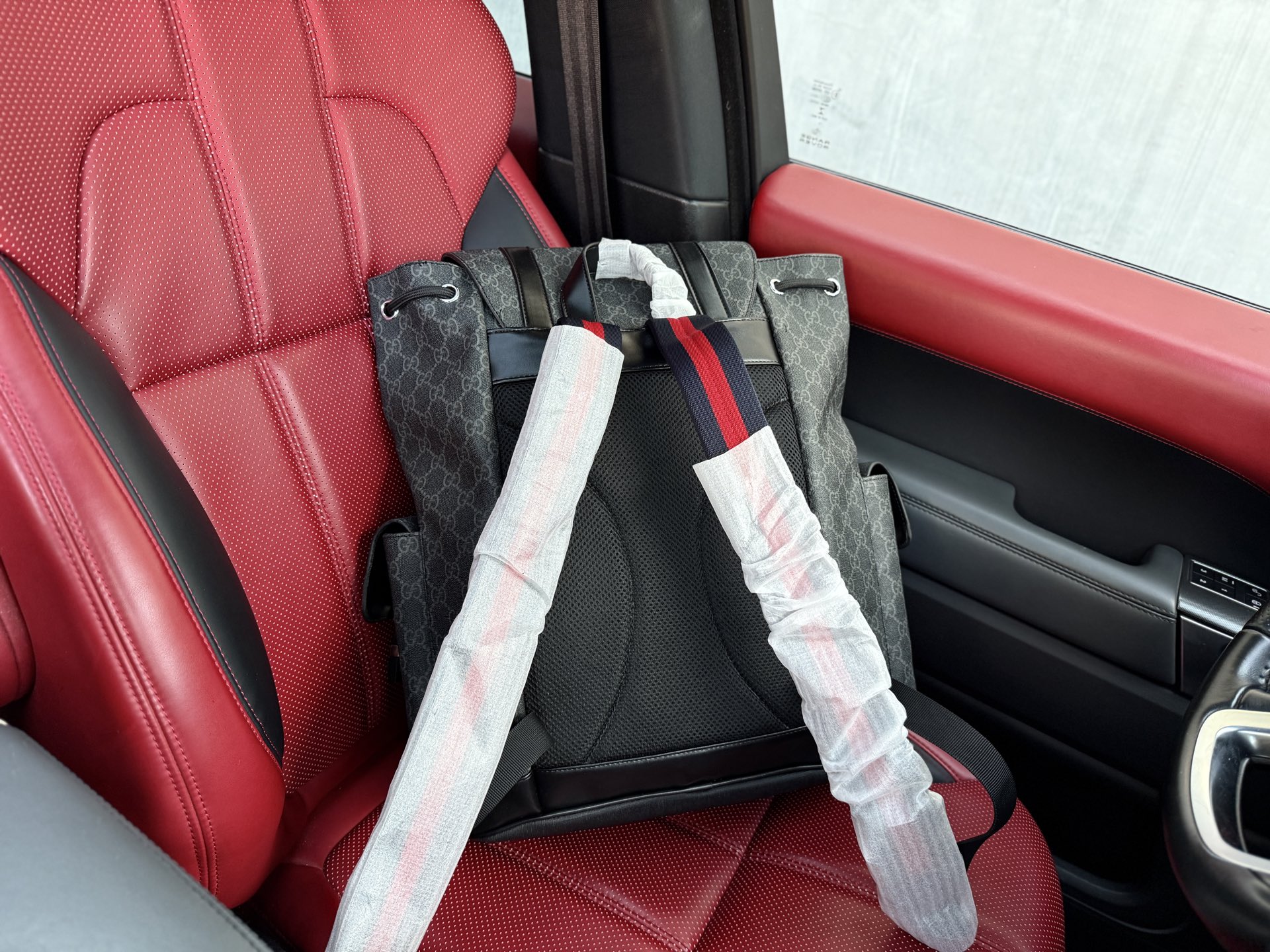 💰280 📷高端货‼️ 新款 “ GUCCI ”古奇双肩包 💼 GUCCI古驰双肩背包 红色织带可调节肩带 帆布拼皮革饰边 双肩包 男款 杏色 高清五金logo标志、专用内里。顺滑拉链、油边平滑、做工精致每个细节到位!潮男必备款。 尺寸:34x43x12cm