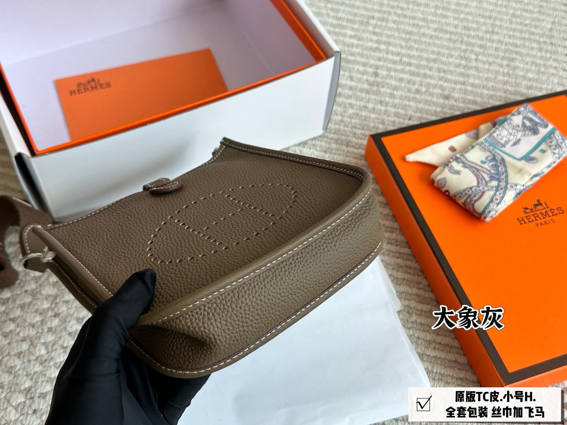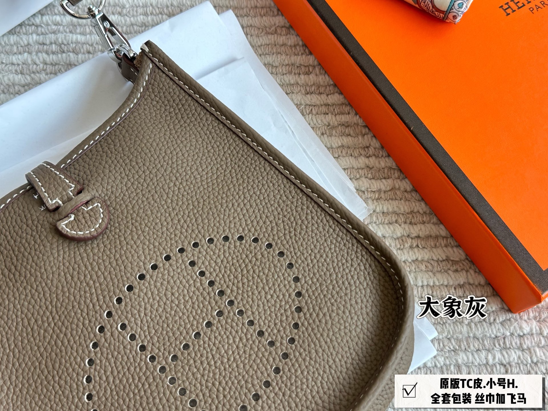 💰340 配全套包装 原版TC皮 配丝巾+飞马 size:18*18cm 伊芙琳mini 独家定制版本 进口皮胚✔️ 不是市面普通版本 绝对的性价比超高 小巧轻便容量足