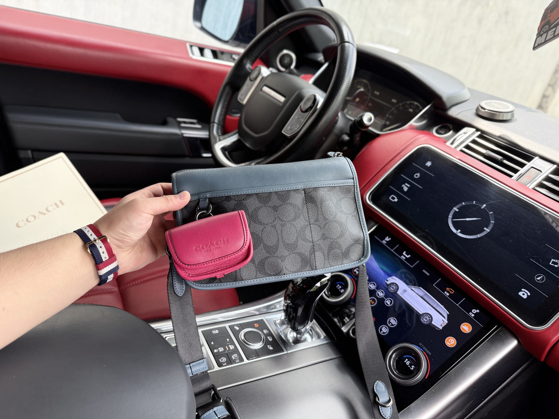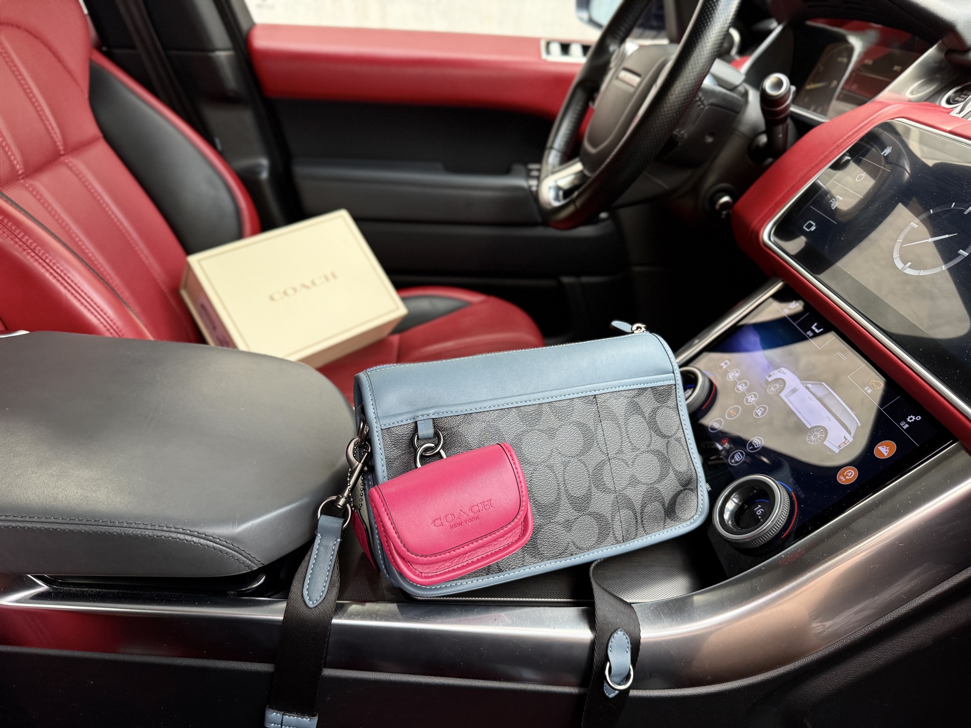 💰260 📷高端货‼️ 新款 “ COACH ”蔻驰单肩包💼 coach蔻驰单肩包邮差包 COACH蔻驰 Heritage 25 经典老花拼色三合一多功能口袋 帆布配皮 斜挎单肩包 男款 黑色拼玫红色 高清五金logo标志、专用里内里。顺滑拉链、边超平滑、做工精致每个细节到位!男人必备款。规格:25x15x5cm。配折叠礼盒🎁