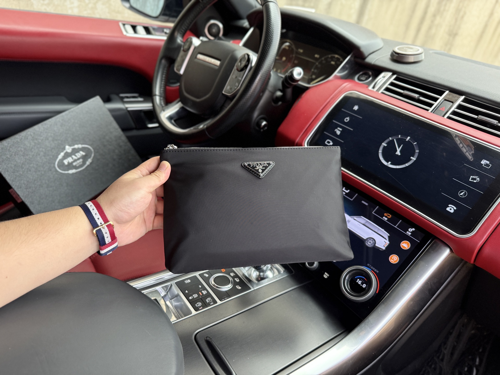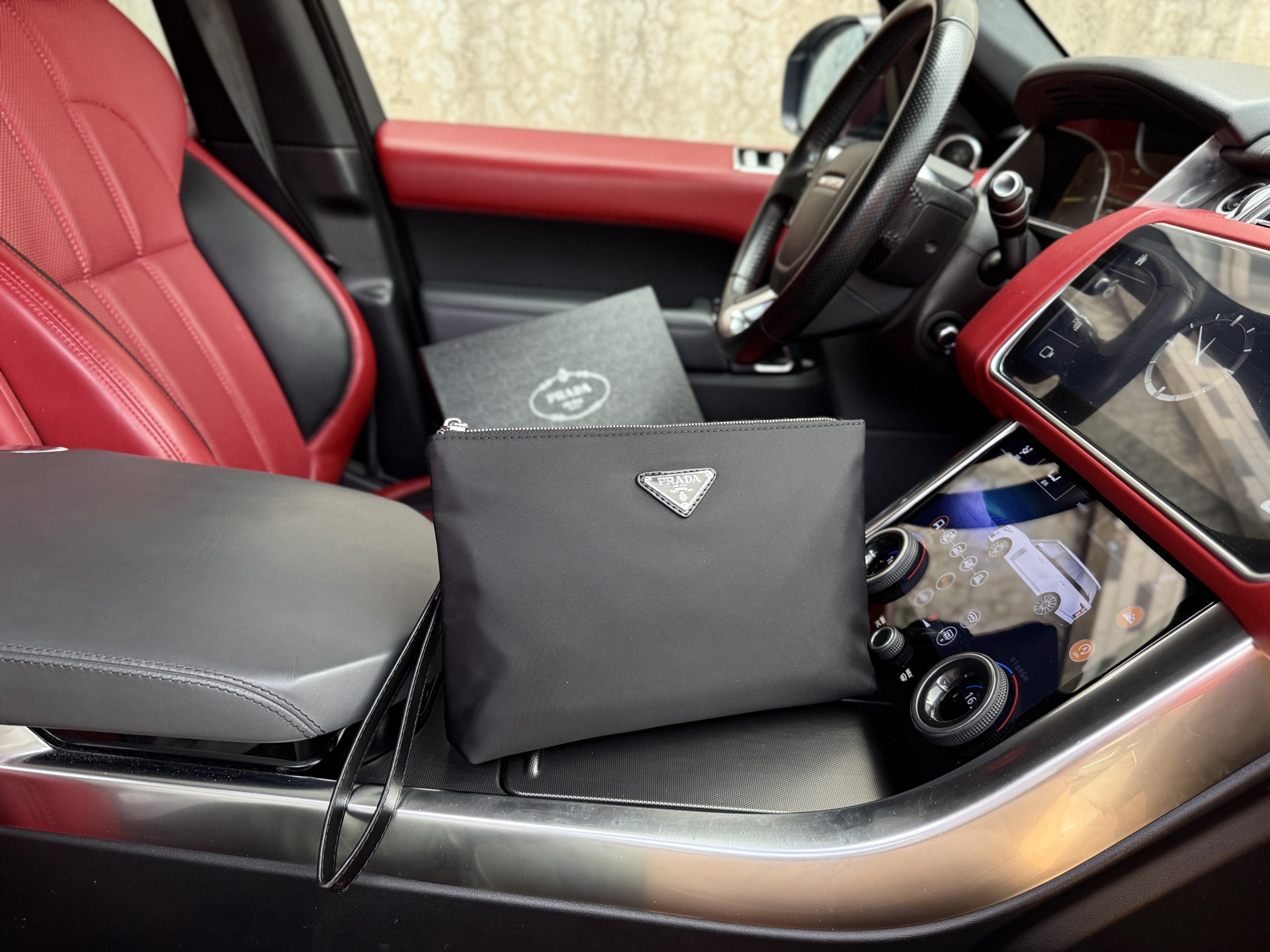 💰240 高端货‼️ 最新款 “ PRADA ”普拉达手拿包💼普拉达手抓包手挽包 尼龙和Saffiano 皮革斜挎包尼龙材质金属配件和钛金属拉链Prada徽标织物衬里两枚旁开扣 正面三角形珐琅徽标这款摩登时尚的单肩包配有可拆卸的小袋挂饰和空间宽大的内部隔层,彰显功能性。尺寸:26x17x4cm 配礼盒🎁