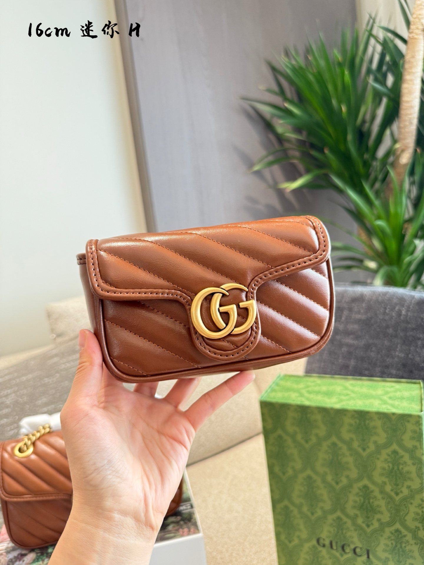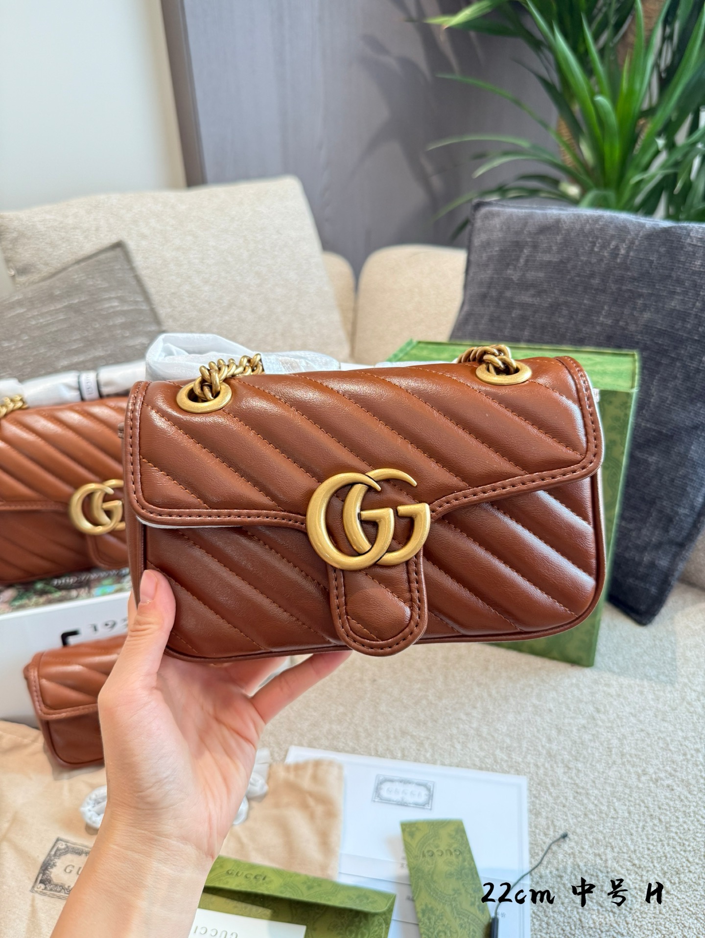 💰260 GUCCI marmont|经典&百搭! GUCCI马蒙链条包经典尺寸: 22cm 26cm 经典金扣双GLOGO复古做旧五金波浪纹衔缝牛皮!采用的是小牛皮不仅有光泽感还很耐用单肩可以优雅成熟斜挎可以休闲个性一包顶百包