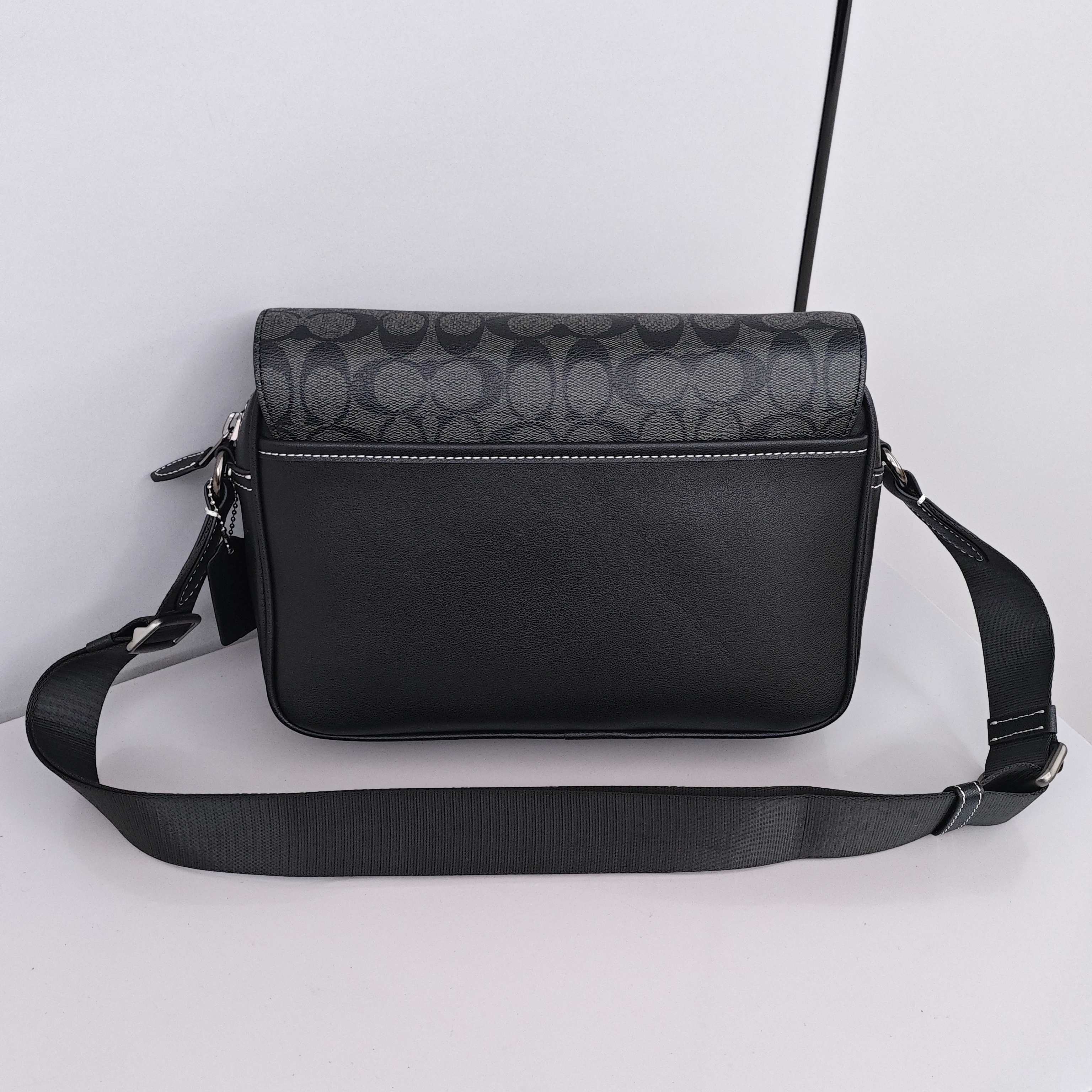 蔻驰Track男士邮差包💰280 尺寸:27×18×7cm 特点:风格摩登时尚,通勤百搭款。 方式:双卡扣式翻盖开合,内部空间宽裕,背带可调节长短。