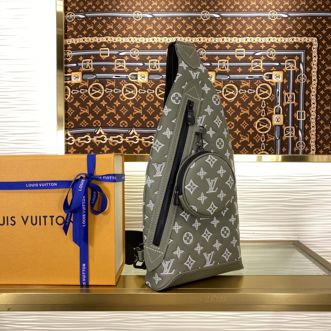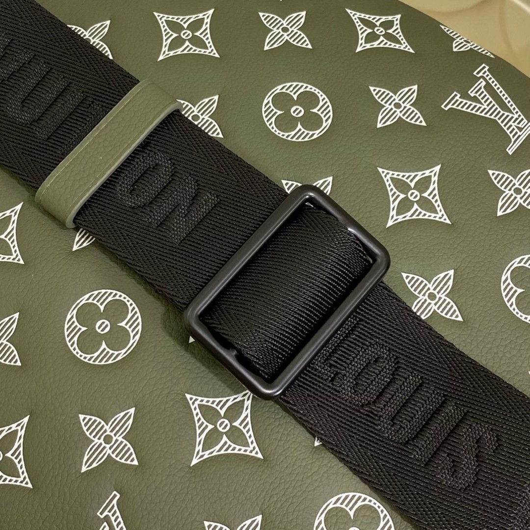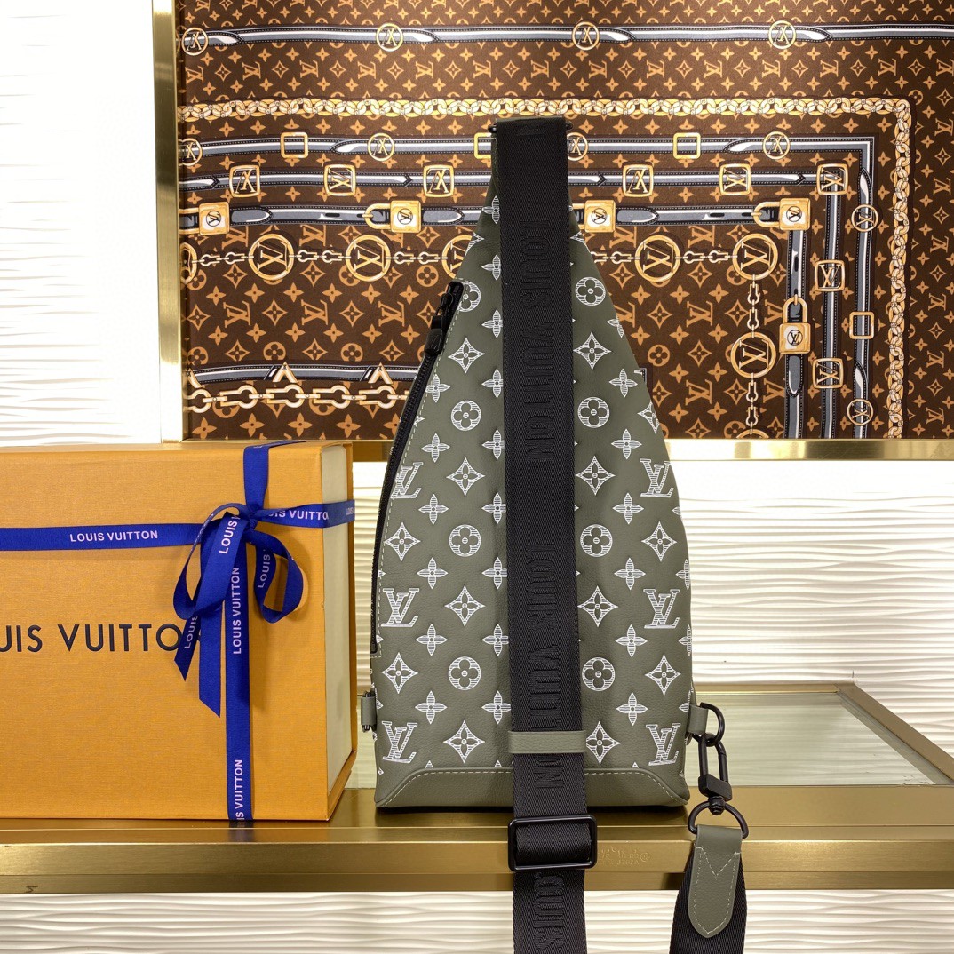 顶级原单 72558860 m12486 军绿色(条纹压花)橄榄绿色的小牛皮,带有白色压花的Monogram签名,为这款Monogram Shadow小牛皮的Duo Slingbag带来了运动感。作为背包的替代品,它有一个可拆卸的小袋和一个主隔间,可以存放小物品。可调节的肩带可以连接到右侧或左侧。 尺寸:20 x 42 x 6厘米