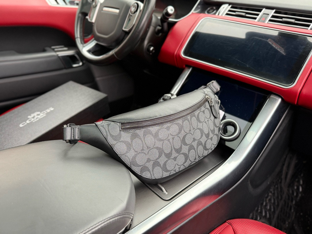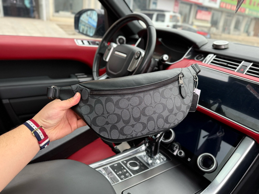 💰240 📷高端货‼️ 新款 “ COACH ”蔻驰腰包 💼蔻驰胸包斜挎单肩包 Warren 33 经典老花满印拉链开合 牛皮 单肩斜挎胸包腰包 大号 男款 炭黑色 进口配牛皮面料🐂Retro 老花Logo 皮革徽标。高清五金logo标志、内里隔层!专用内里。顺滑拉链、做工精致每个细节到位!男人必备款。规格:33x16.5x3cm 配礼盒🎁