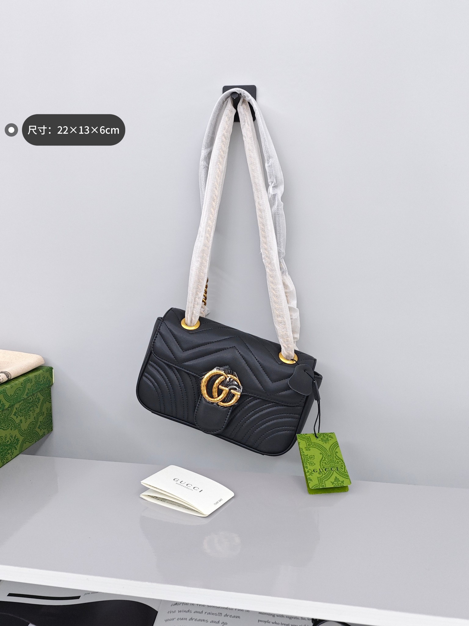 Gucci马蒙链条包💰260 尺寸 :22×13×6cm 特点:风格高级非凡,四季百搭款。 方式:锁扣翻盖开合,内部空间可放下手机充电宝等日常随身物品,肩带有多种背法,可滑动自由转换,可腋下可斜挎背。