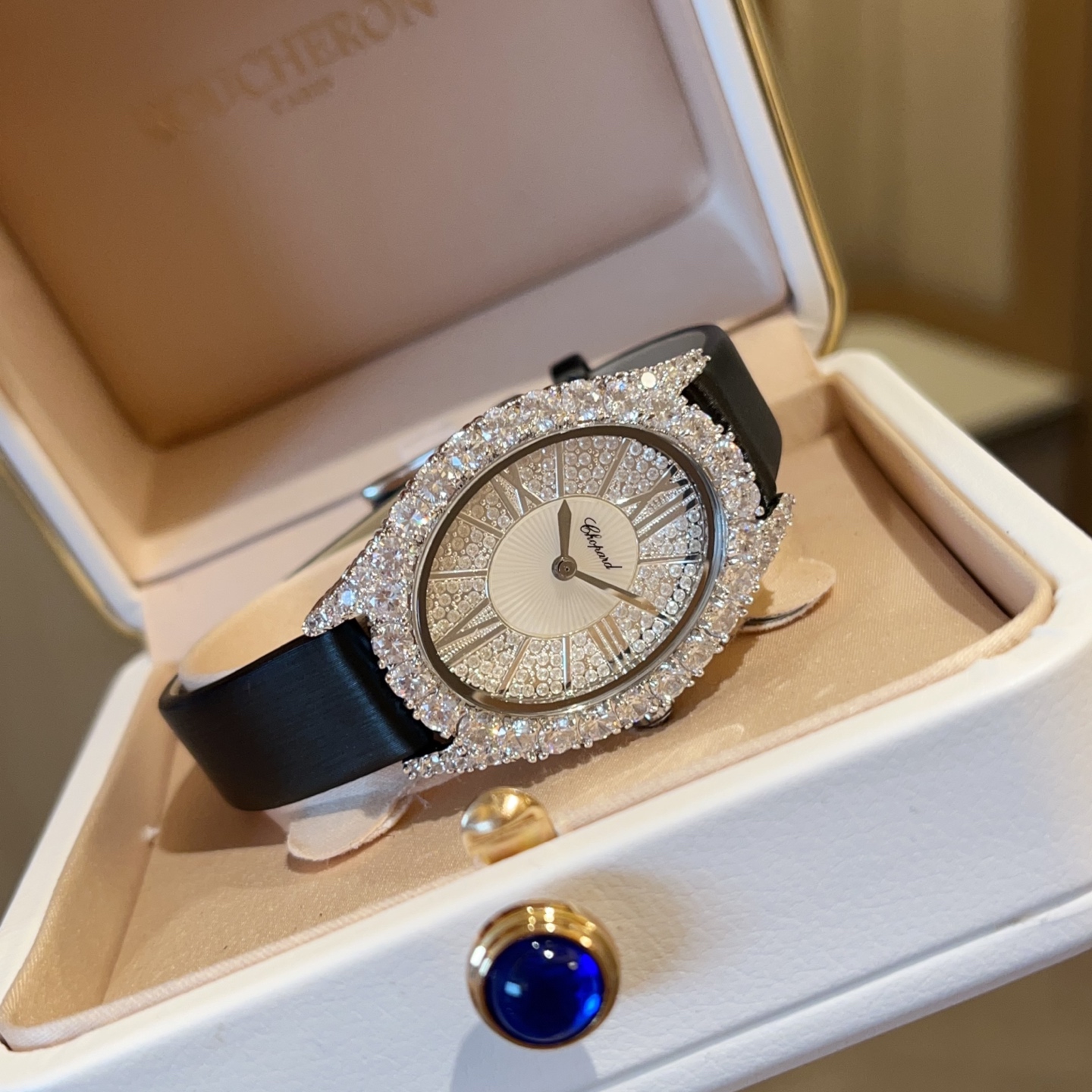 💰340 ChopardL‘HeureduDiamant#系列腕表,采用品牌标志性“皇冠爪镶”工艺,以精湛技艺与风格为女性之美谱写出一曲奢美的颂歌,一如作品上镶嵌的耀眼美钻,永恒不息地赞颂着光的魅力,佩戴后每分每秒闪耀璀璨。
