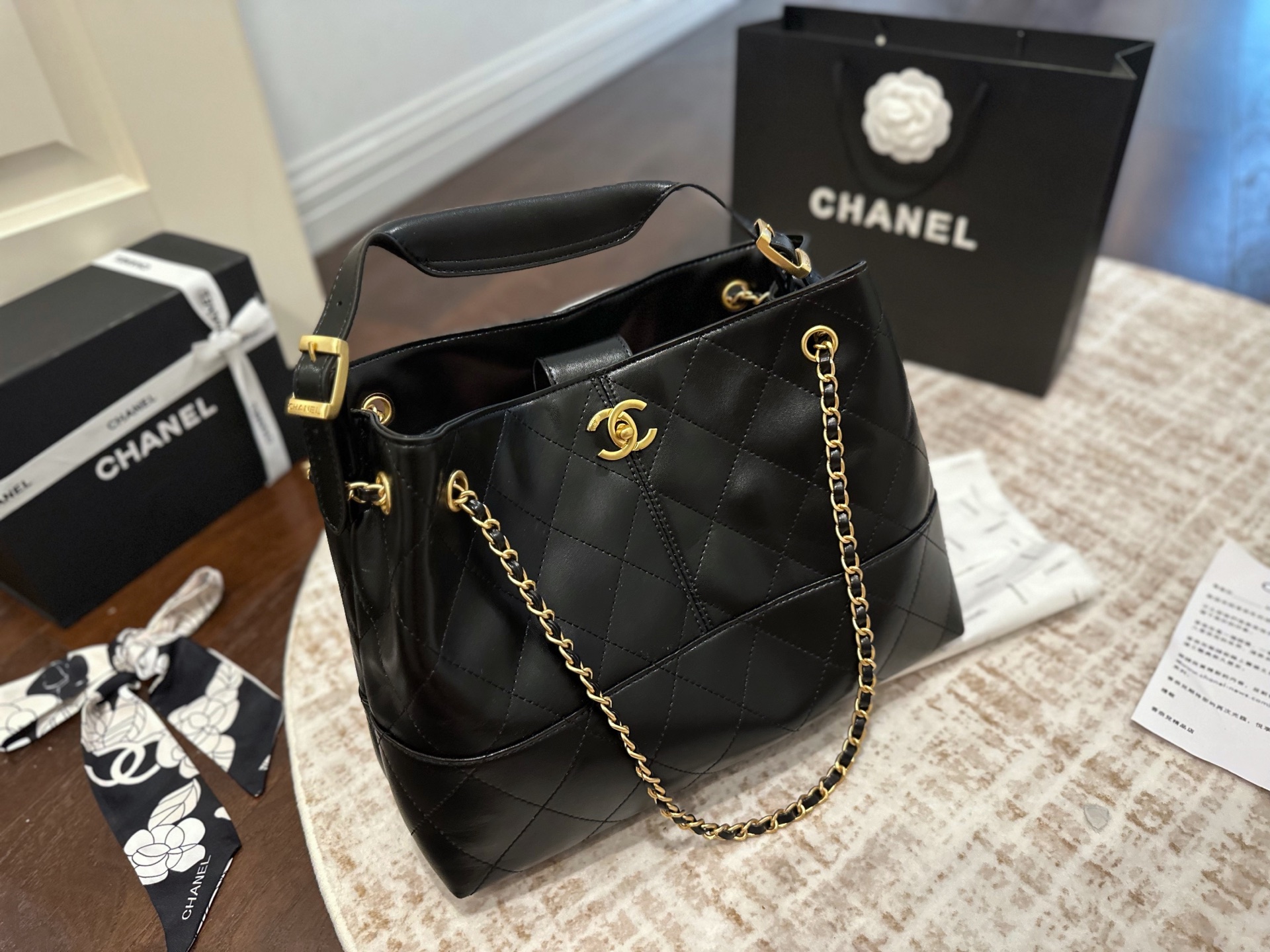 💰320 折叠礼盒包装 chanel香奈儿 新款hobo 麂皮绒购物袋手提包 超级喜欢它简单有质感的设计, 上身性感而帅气,很能装而且方便啊! 无敌时髦洋气~尺寸:35*13*23cm