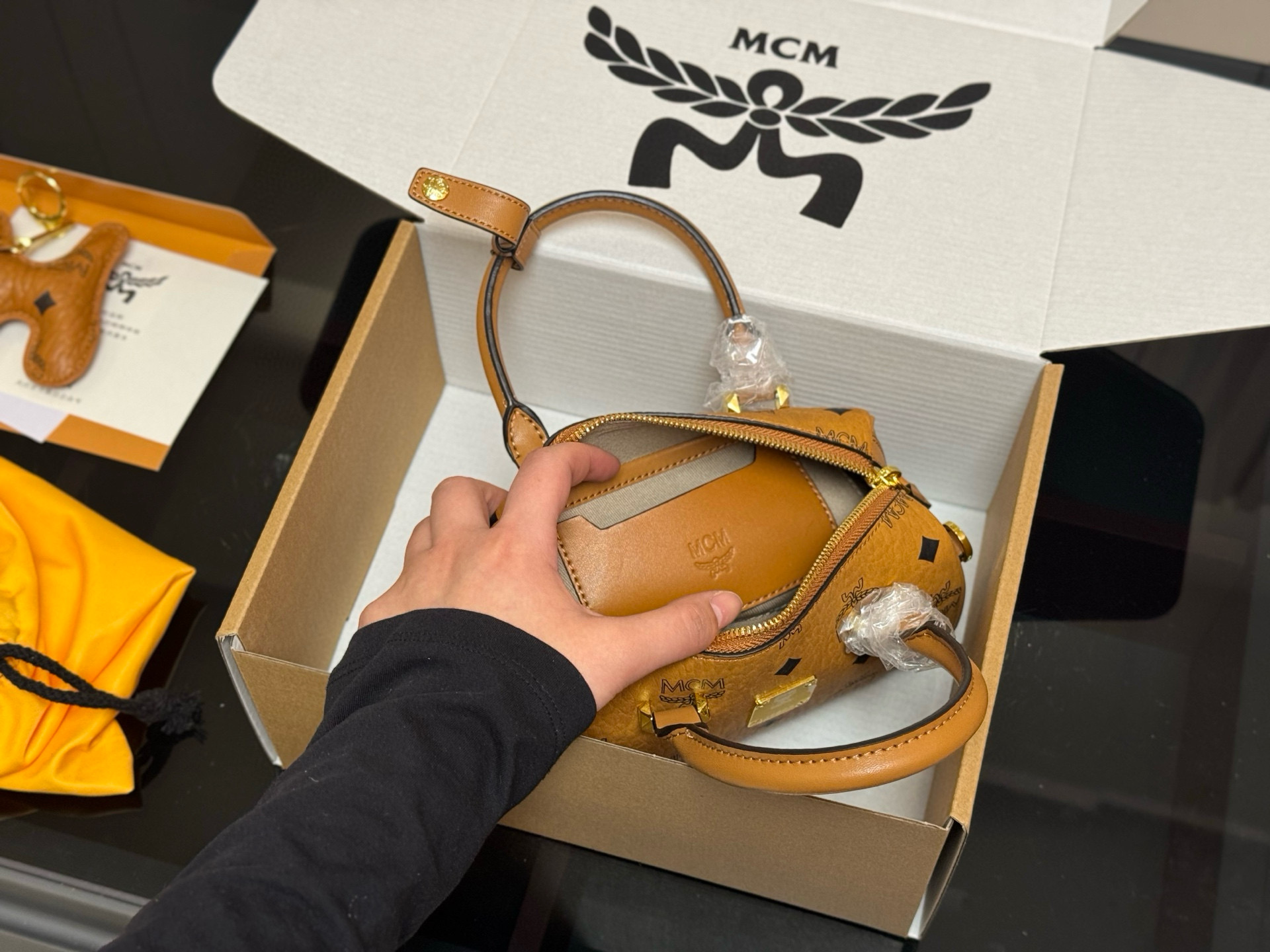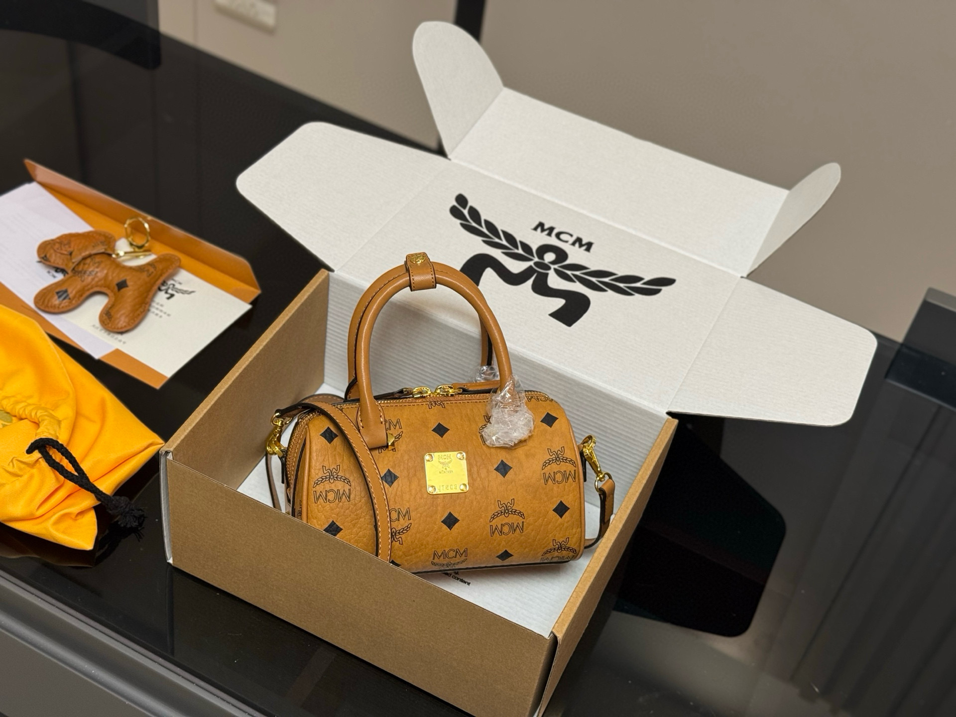 ¥240 配飞机盒 size:18*9.5cm 原单!原单! MCM mini波士顿枕头包 专柜对版五金 👏来咯 出入专柜无压力 ⚠️赠送小狗配件