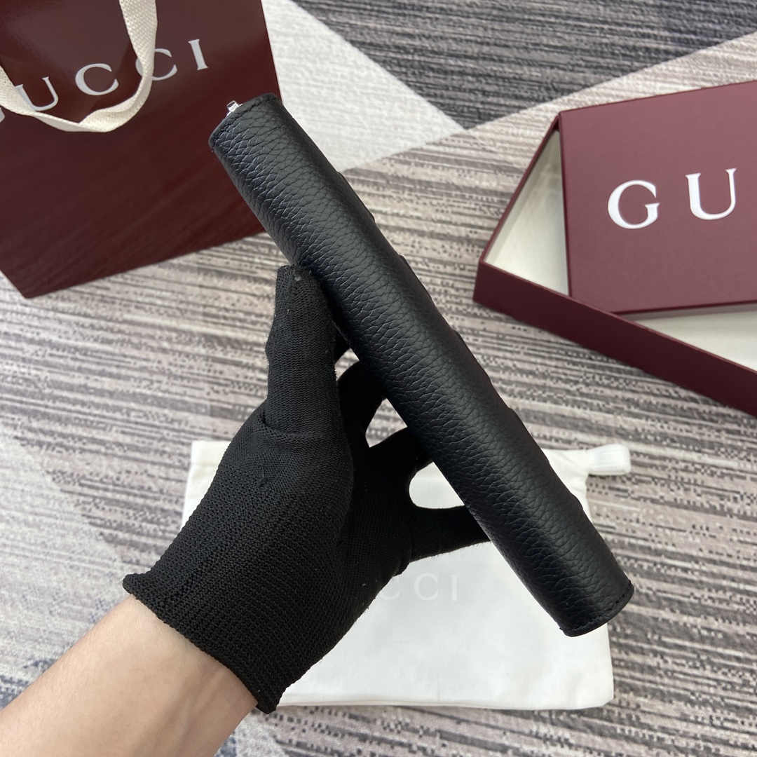 配全套专柜包装】‼️GG Marmont系列以缤纷彩色细节为吸睛亮点,新颖功能为经典廓形添注活力。这款双折钱包采用牛皮制作, 黑色牛皮革 黑色云纹织物衬里 十二个卡片隔层和三个秒票隔层 拉链零钱袋 重量:约0.23千克 型号:835120。 尺寸:10.5厘米(长)x19厘米(宽)x2厘米(厚) 颜色:黑色全皮。 意大利创作