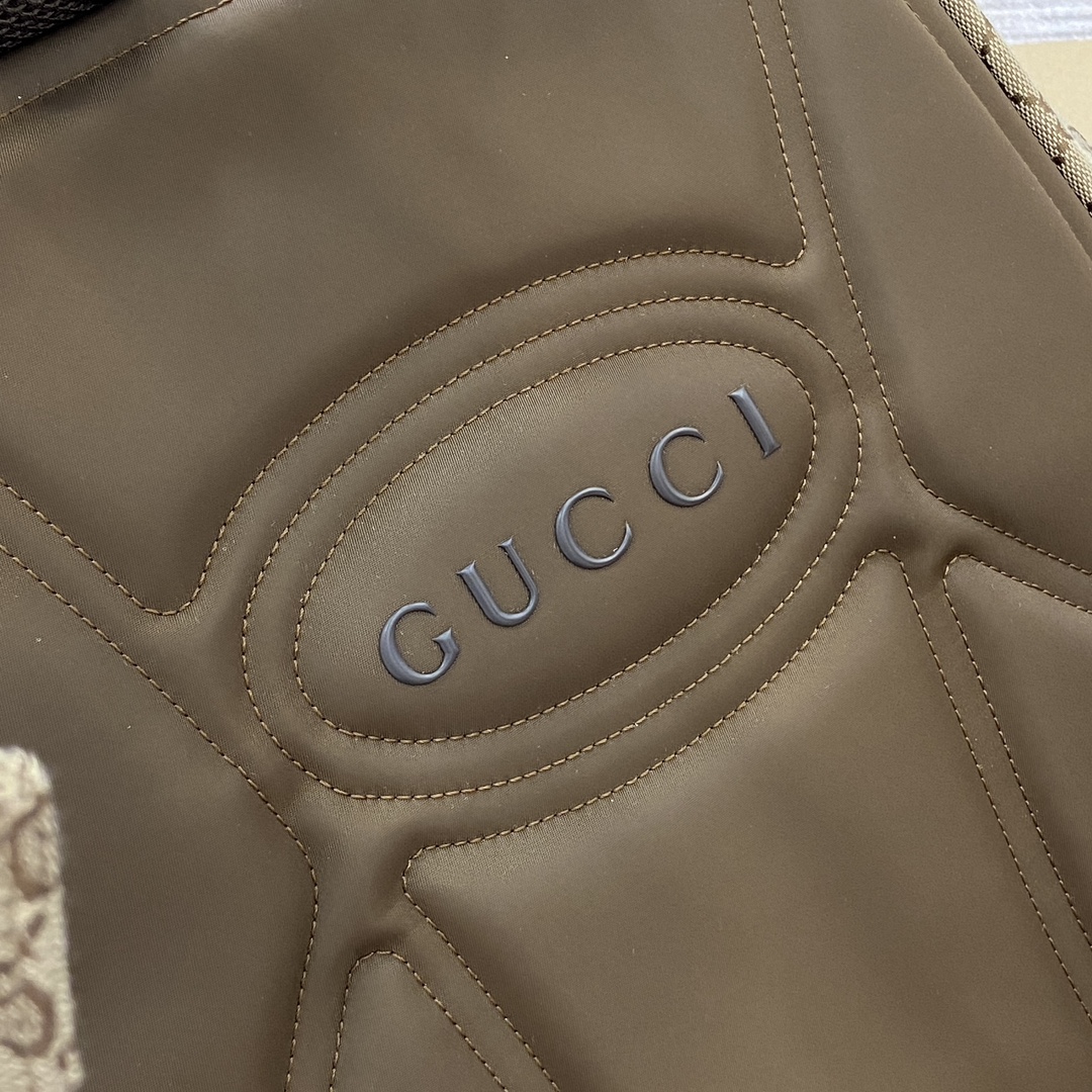 配专柜礼品袋】‼️饰Gucci标识大号背包 作为2024秋冬男士秀场的一款力作,这款背包匠心融蕴时尚线条与运动风尚。这款包袋以米色和乌木色经典GG帆布匠心打造,缀饰以高频压印技术打造的Gucci浮雕标识,低调而不张扬。其他经典细节还包括拉链外袋上的红绿织带细节。 型号:800182。 尺寸:48✖️45✖️21cm。 颜色:棕色/杏布。