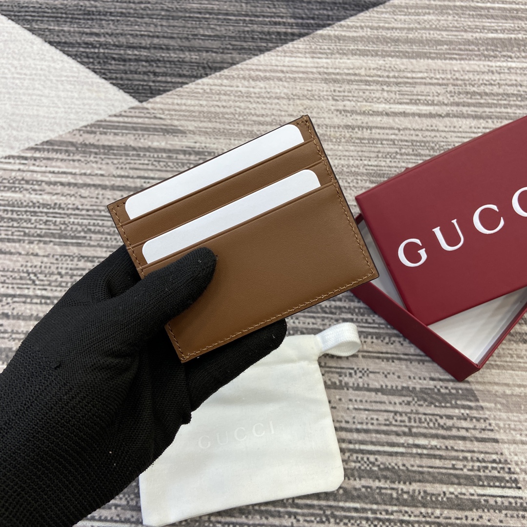 配全套专柜包装】‼️GG Emblem系列以创意设计和创新功能焕新诠释经典图案,匠心缔造未来数年的珍藏之选。这款卡片夹以黑色亮面皮革匠心打造,内部巧妙融入全新GG字母交织图案织物,焕新演绎全新配饰系列。正面精心搭配Gucci压花,内设多个隔层。 型号:818952。 10厘米(宽)x 8厘米(高) 颜色:棕色/pvc/原厂皮。