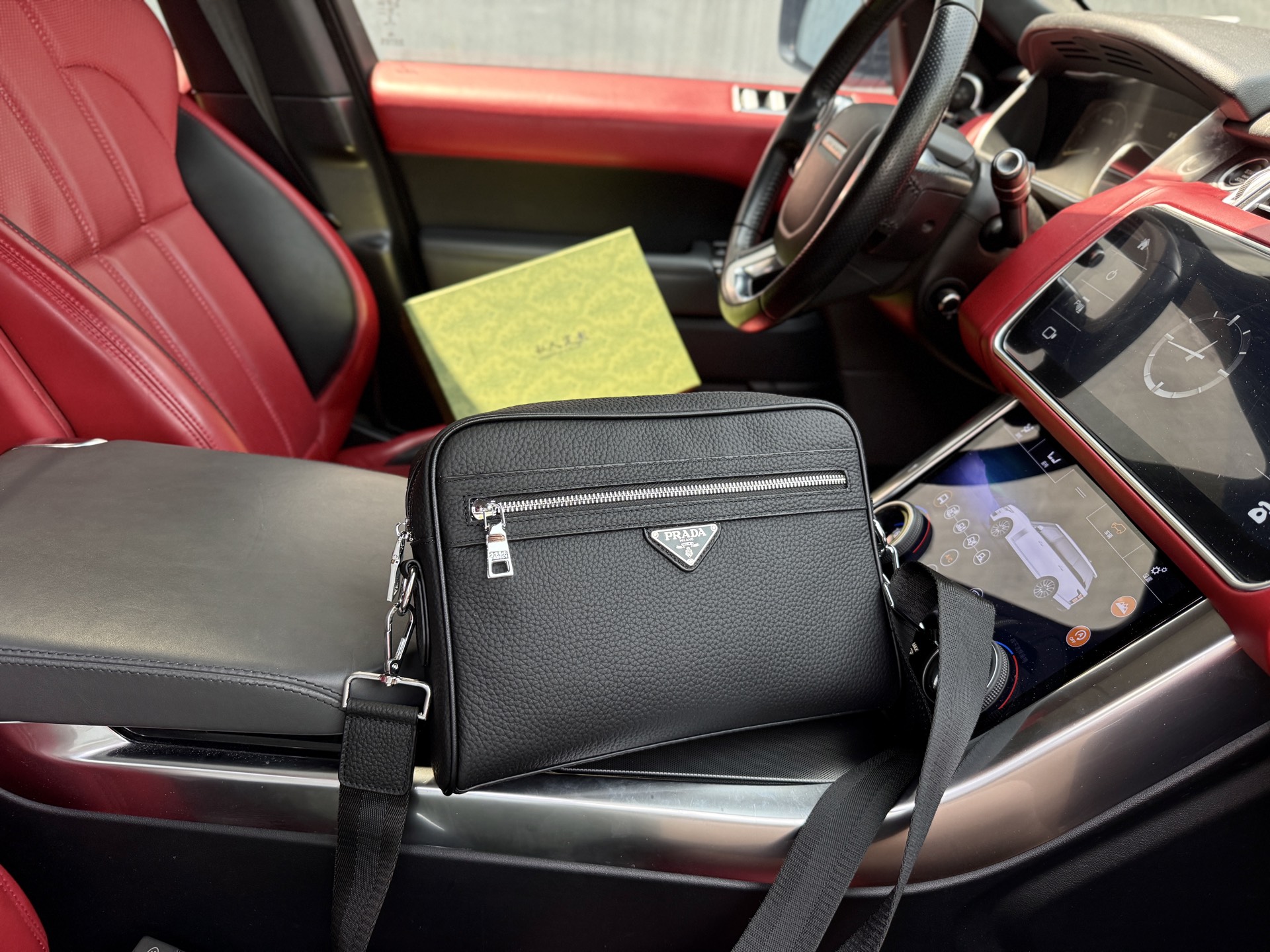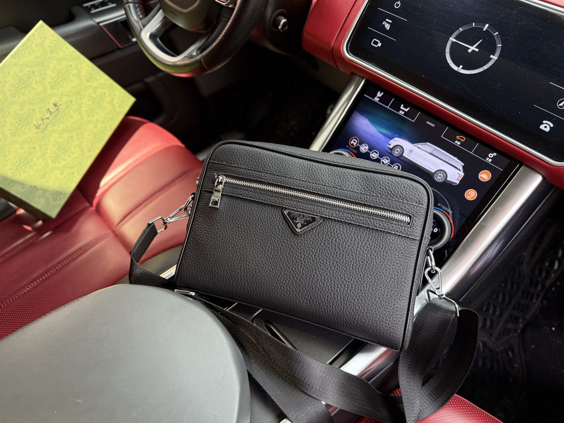 💰260 📷高端货‼️ 新款 “ PRADA ”普拉达单肩包💼 prada普拉达牛皮斜挎包 可调节肩带磁吸扣开合 粒面软皮 头层牛皮 单肩斜挎包 男款 黑色 超高清五金logo标志、顺滑拉链、油边超平滑、做工精致每个细节到位!男人必备款。规格:29x20x5cm 配礼盒🎁
