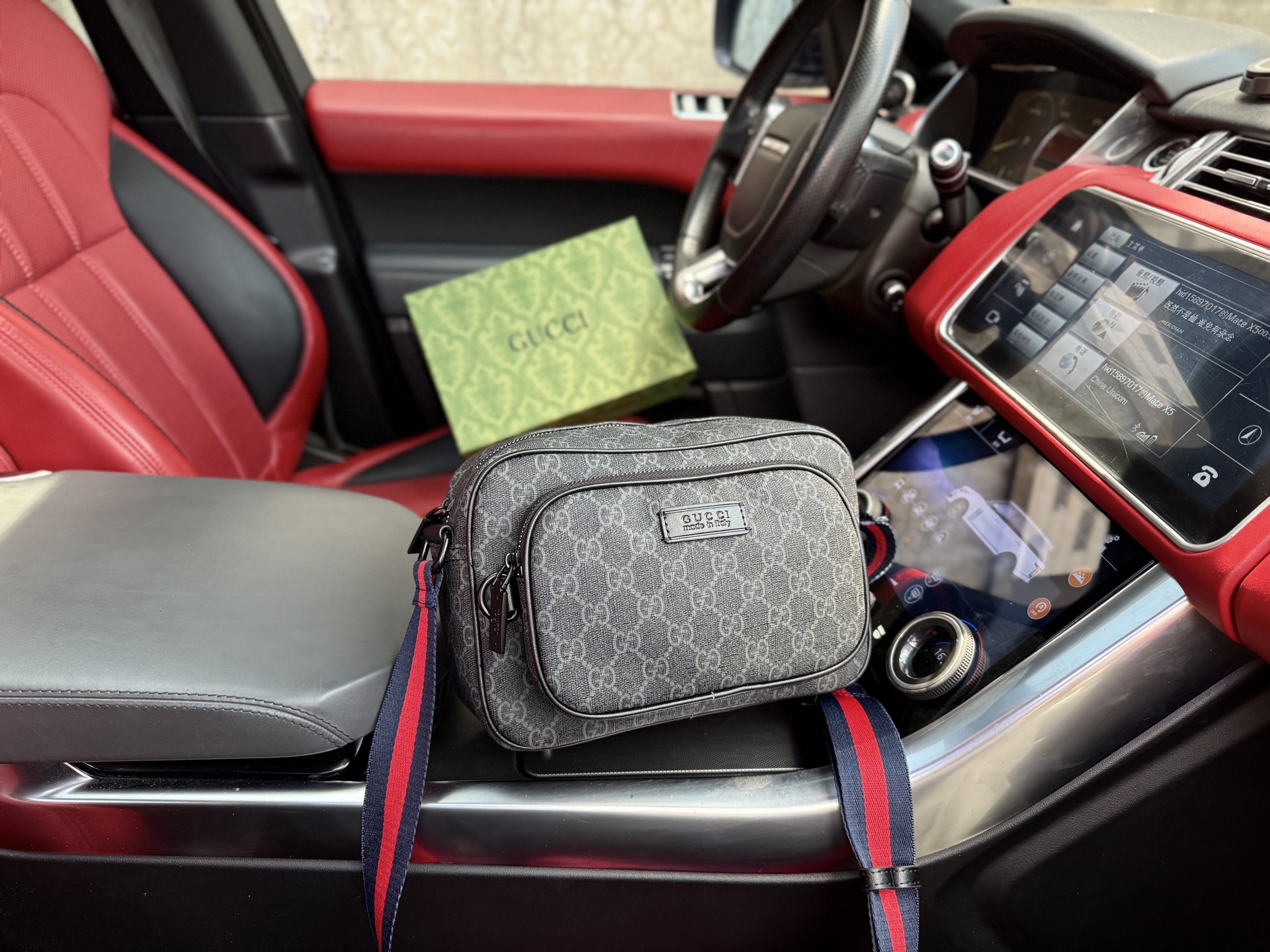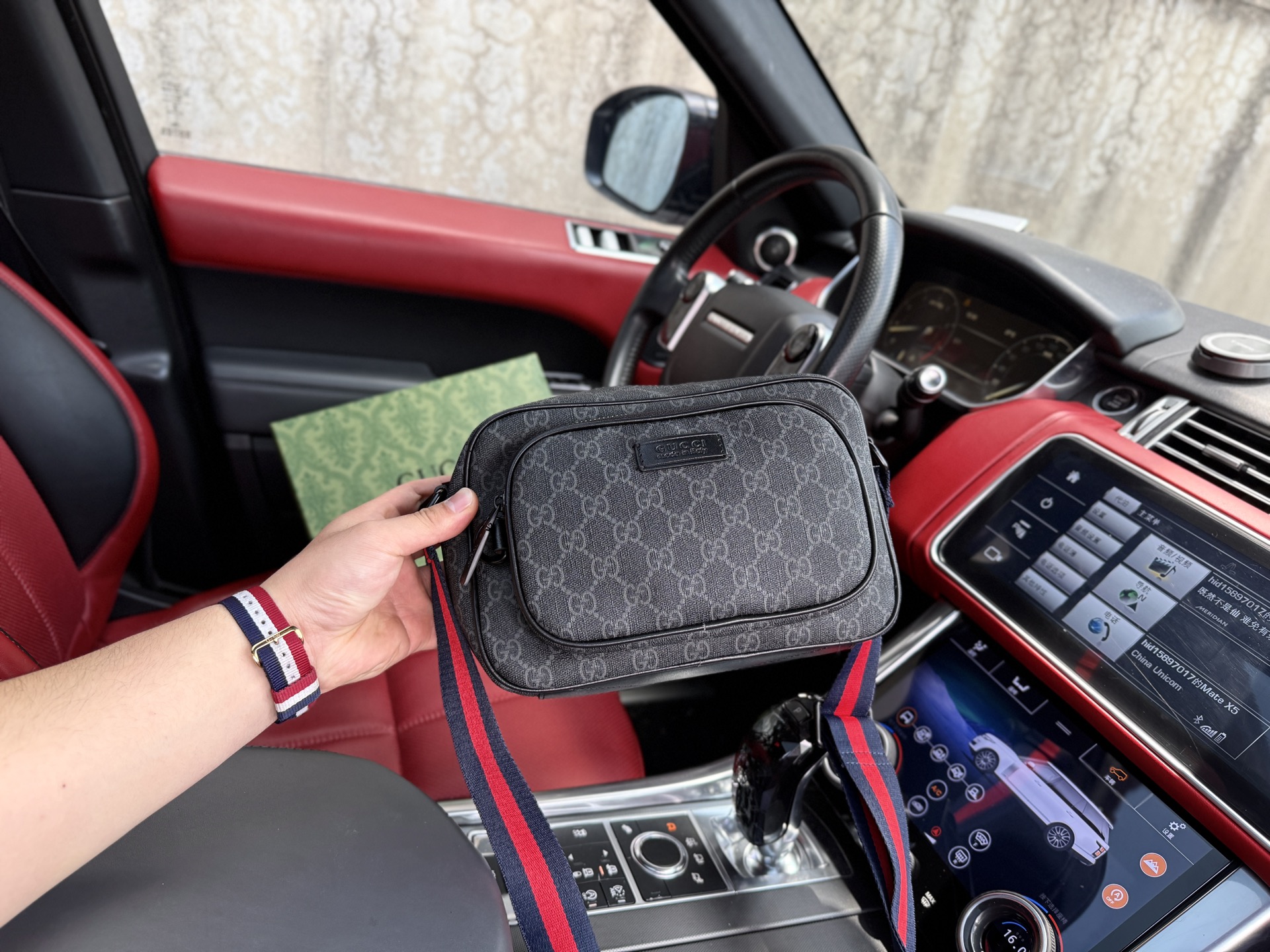 💰240 📷高端货‼️ 新款 “ GUCCI ”古奇单肩包💼 GUCCI古驰邮差包 GUCCI古驰 GG Emblem 标志品牌印花拉链开合 涂层面料 单肩斜挎包 中号 男款 黑色 高清五金logo标志、内里隔层!专用内里。顺滑拉链、做工精致每个细节到位!男人必备款。规格:23x16x8cm 配礼盒🎁