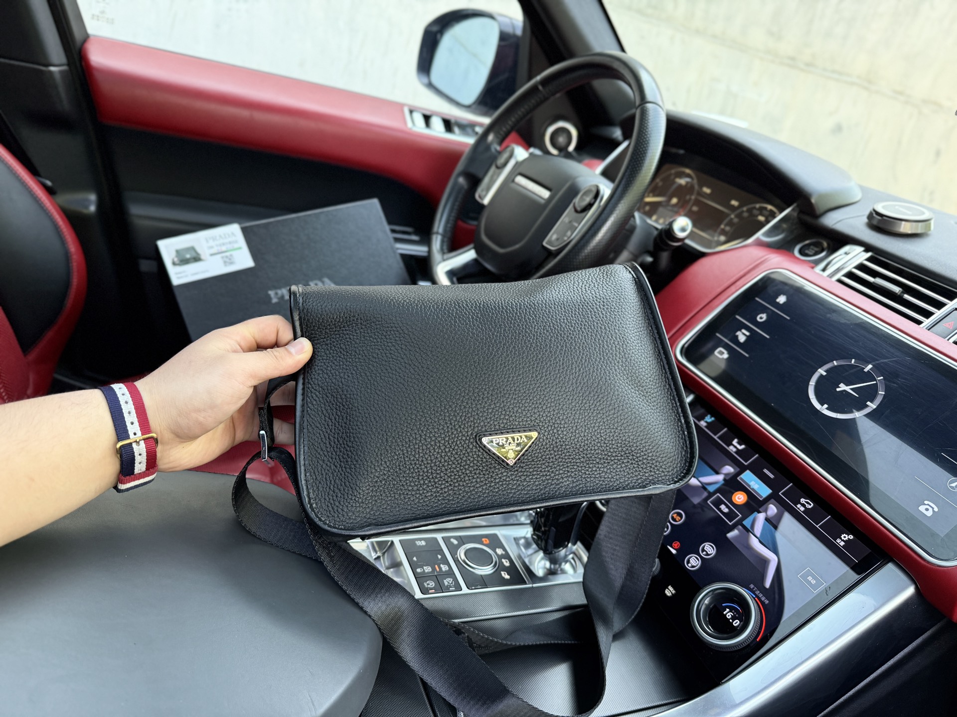 💰260 📷高端货‼️ 新款 “ PRADA ”普拉达单肩包💼 prada普拉达邮差包 Jumbo 可调节织带肩带拉链开合 皮革 单肩斜挎包 超迷你 男款 黑色 高清五金logo标志、内里隔层!专用内里。顺滑拉链、做工精致每个细节到位!男人必备款。规格:30x20x13cm 配礼盒🎁