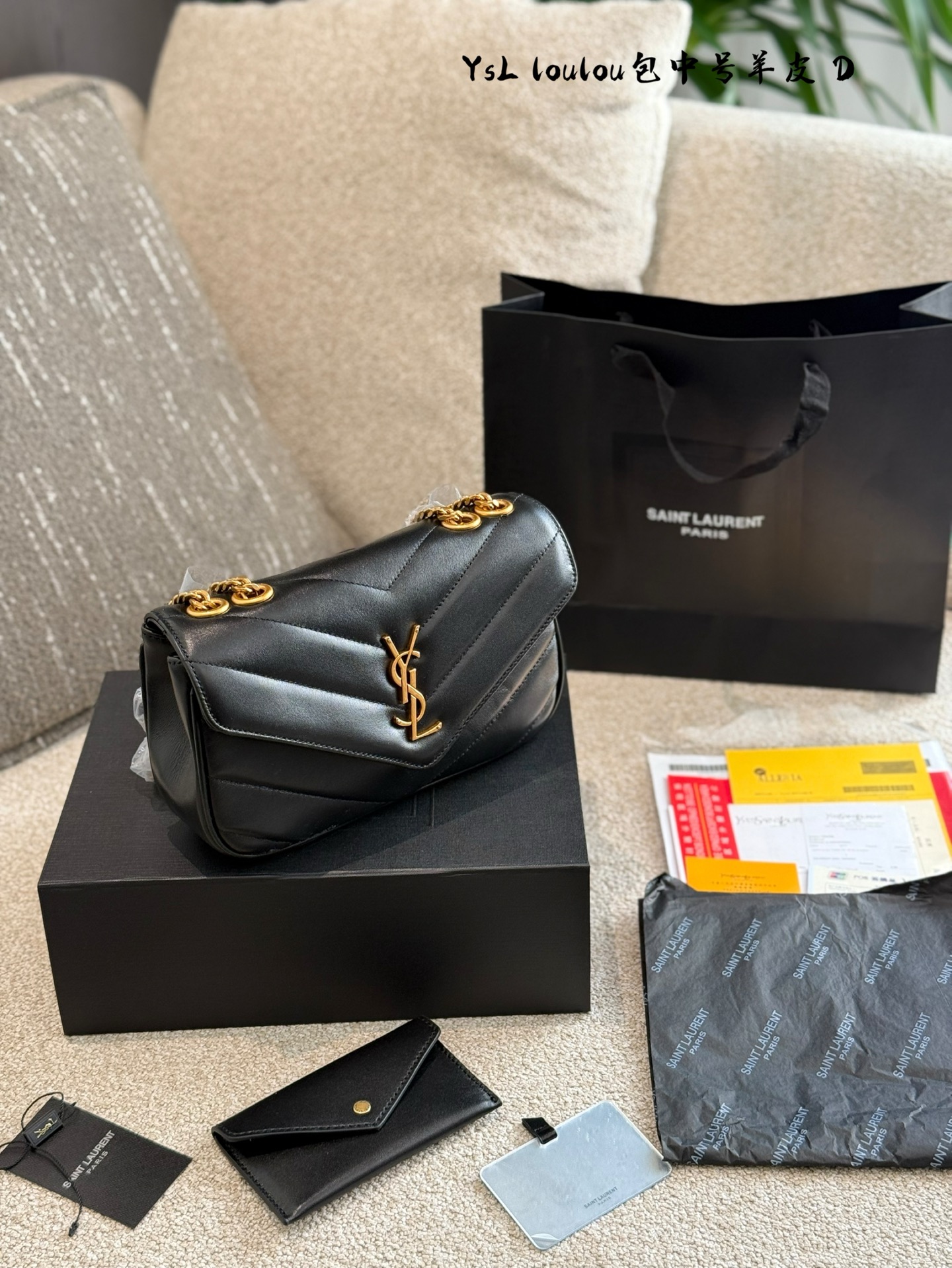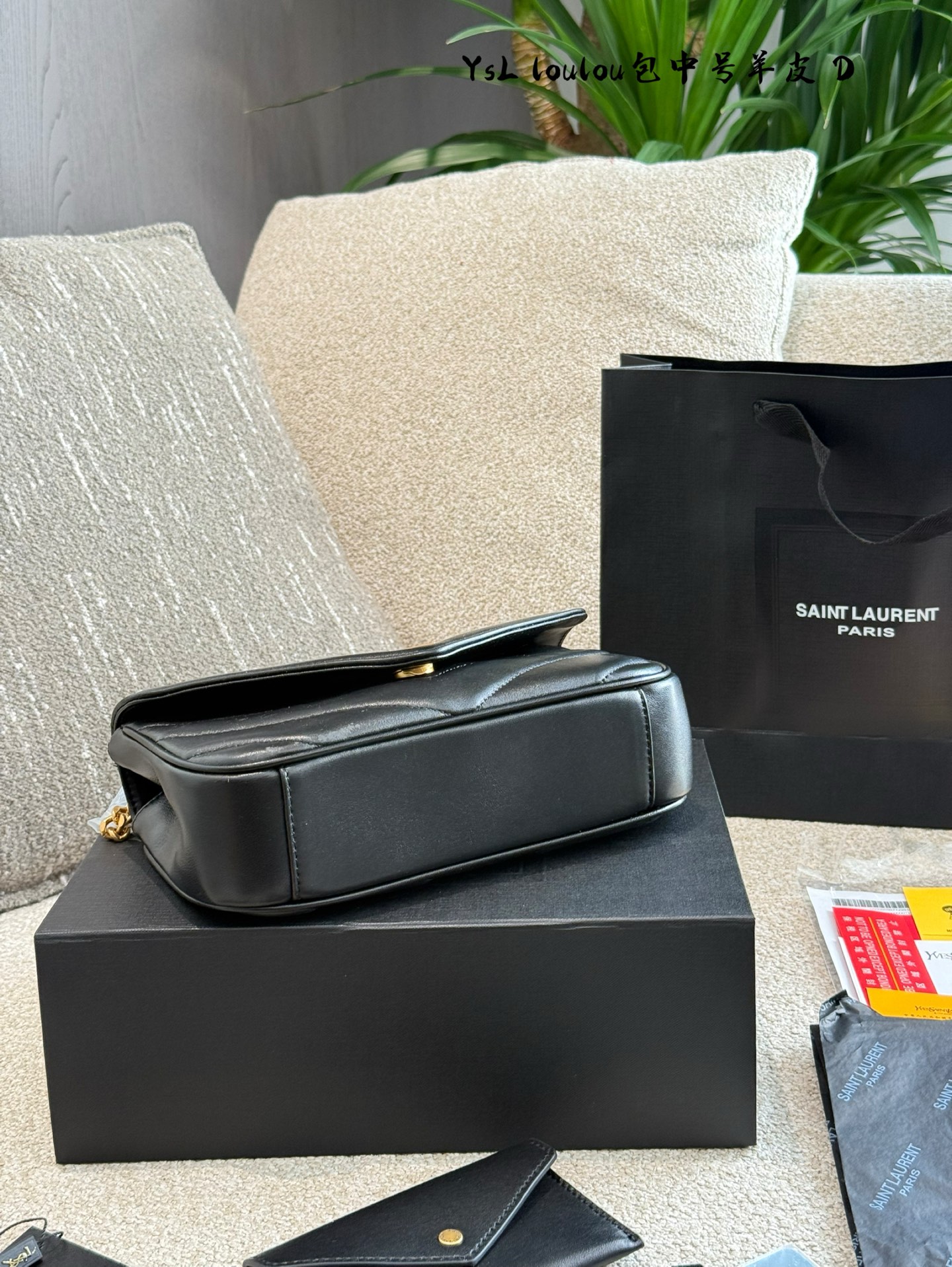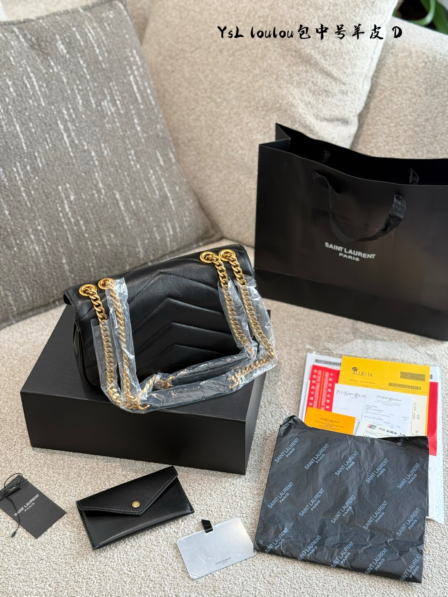💰280 送卡包送镜子 最近出门超爱背的包包 圣罗兰25早春LouLou款 羊皮手感柔柔软软的,新版羊皮另外做了涂层处理,不仅更耐用,还更具光泽感,显的整个包都格外精致,美丽羊皮信封式手袋饰以人字纹绗缝明缝线 搭配滑动式链带可肩背可斜挎 满足多场合搭配使用需求。24cm 全套包装送纸袋