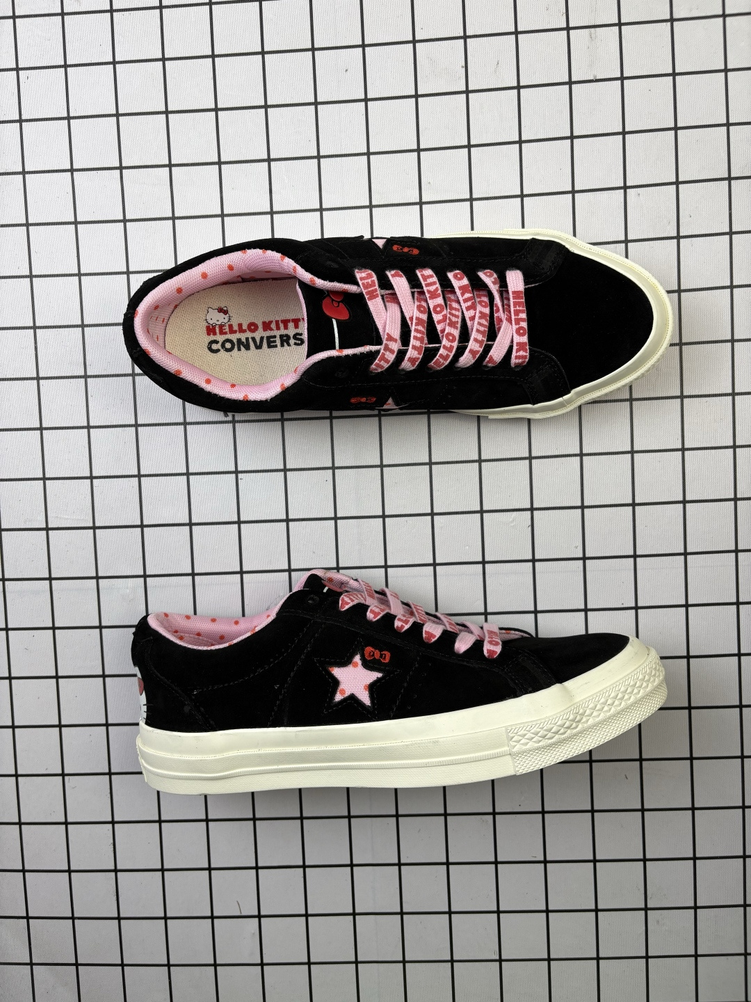 💰130 匡威 Converse x Hello Kitty 联名款低帮休闲板鞋 362940C 配色结合经典的One Star鞋款 粉色鞋身 侧面星星搭配刺绣蝴蝶结 呈现风格极为有趣 少女心十足 两副鞋带 可替换使用或花式系带 根据服饰的色彩随意切换造型! 码数:35 36 36.5 37 37.5 38 39 39.5 40 41 41.5 42 42.5 43 44 编码648