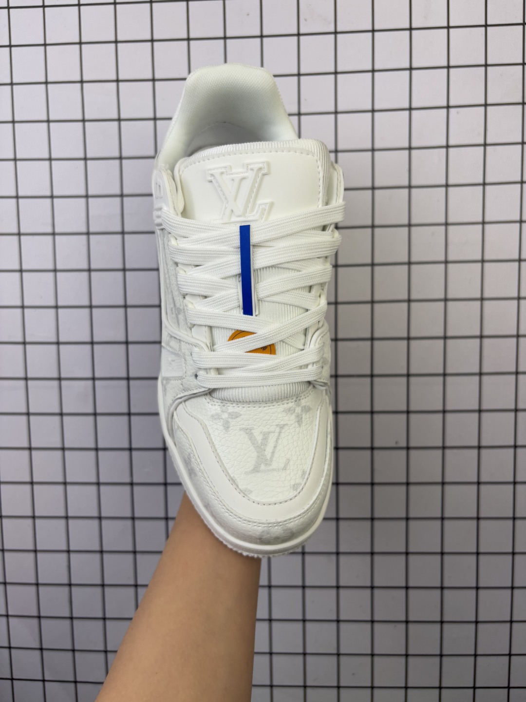 💰200 【公司级】路易威登 Louis Vuitton LV路易威登板鞋 时尚运动鞋潮厚底增高男女鞋。舒适防滑底和百搭性霸屏整个时尚娱乐圈,细节调整完美主义!采用柔软帆布皮革拼接鞋面,独家开模大底, 侧边采用3D打印标志性Logo 尽显贵族时尚气息,配带正品全套包装。全新LV路易威登Louis vuitton Trainer Sneaker Low 休闲运动文化百搭板鞋。 类型:男女鞋 尺码:36-45 编码:旭D