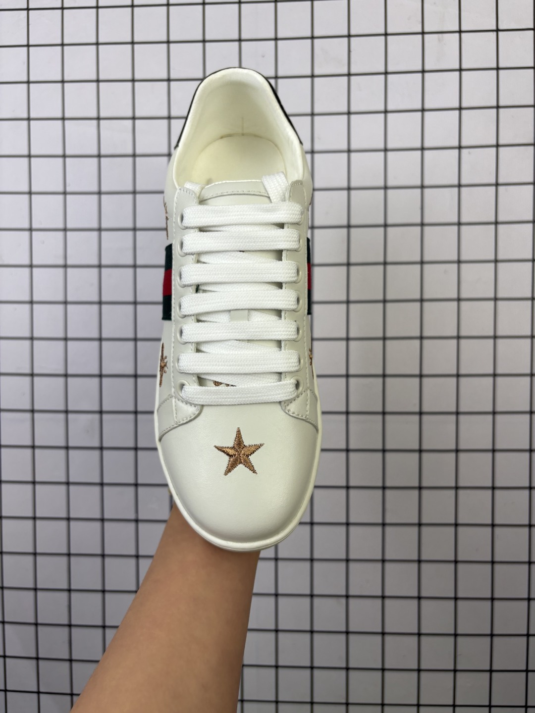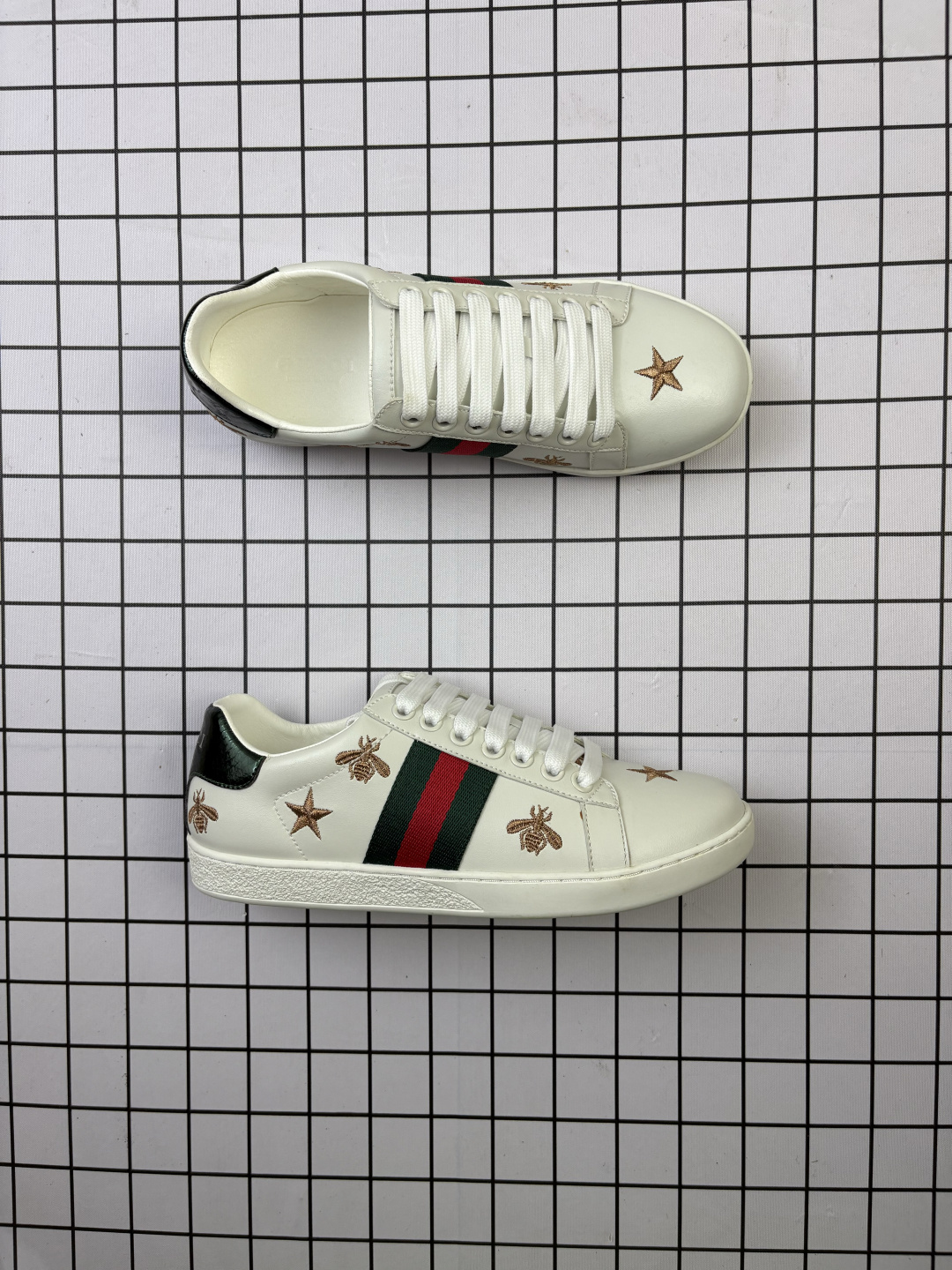 💰120 意大利时装奢饰品牌·古驰Gucci Ace Embroidered Low-Top 拼色刺绣系列经典低帮百搭休闲运动小白板鞋“皮革黑深蓝红小蜜蜂”429446 A38G0 1284 尺码:35 36 37 38 39 40 41 42 43 44 Ace系列低帮运动鞋采用皮革打造,织带上配以Gucci金色蜜蜂刺绣。 黑色皮革,配以蓝色和红色织带,以及金线蜜蜂刺绣一只鞋后部装饰红色水蛇皮细节,另一只后部配以蓝色水蛇皮细节 橡胶鞋底 编码698 35-44