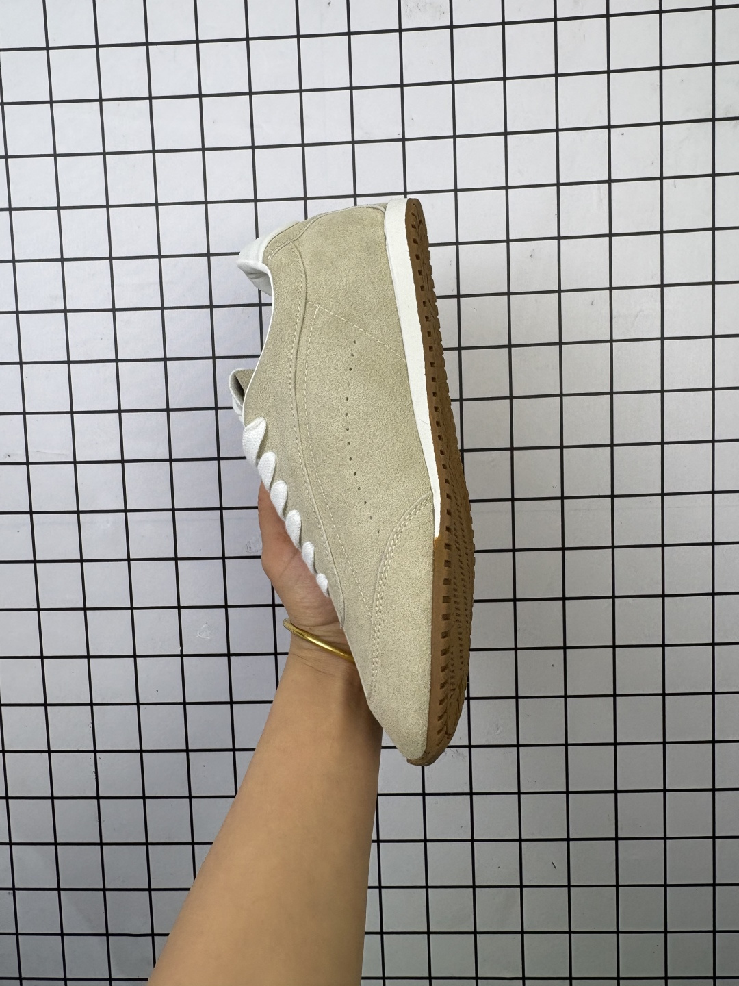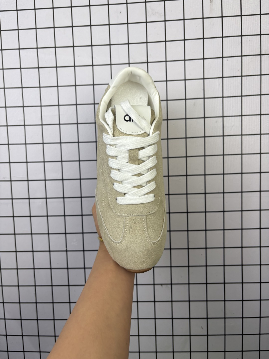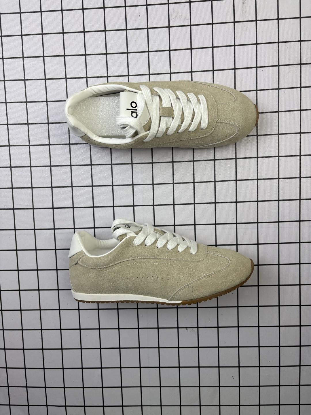 💰140 ALO YOGAALOSunset新款运动鞋绒面革低帮薄底休闲鞋简约风 采用柔软麂皮拼接透气内里,鞋底具备一定缓震性,适合日常通勤或周末出游。品牌目前主要面向亚洲市场,生产与设计团队位于韩国,注重细节打磨与季节性潮流趋势的结合。 鞋面是细腻的麂皮材质,摸起来柔软又有高级感,搭配浅咖色系特别百搭,鞋底有一定厚度但不笨重,踩下去有轻微的回弹感,像是脚底被轻轻托住。最打动我的是它的设计细节——后跟微微收窄的线条,让脚踝看起来更修长,搭配裙子或牛仔裤都很有氛围感。 Size:35~44 编码旭D