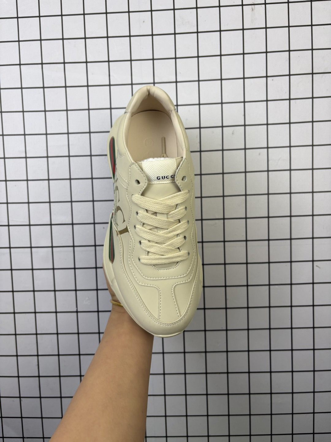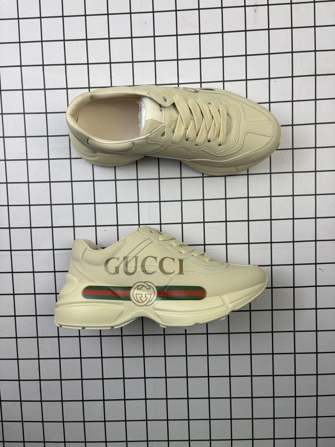 💰160 公司级✅意大利时装奢饰品牌·古驰Gucci Rhyton Vintage 角状系列低帮复古厚底老爹风休闲运动鞋“象牙白长条绿红印花”500877 DRW00 9522 尺码:35-45 编码:698 产品细节 运动鞋采用厚实鞋底和沉稳结构的设计,以彰显复古风格,皮革经过精心处理,营造古旧效果。象牙色皮革经过处理,带有古旧效果 背面鞋底上压印Gucci标识 橡胶鞋底 5厘米