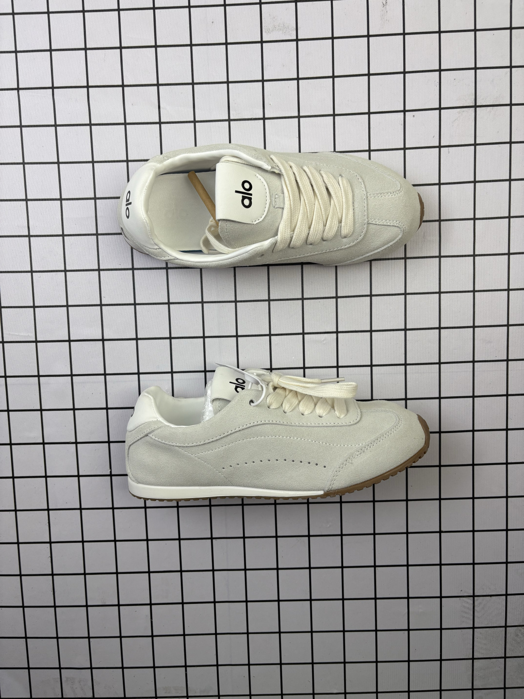 💰170 ALO YOGAALOSunset新款运动鞋绒面革低帮薄底休闲鞋简约风 采用柔软麂皮拼接透气内里,鞋底具备一定缓震性,适合日常通勤或周末出游。品牌目前主要面向亚洲市场,生产与设计团队位于韩国,注重细节打磨与季节性潮流趋势的结合。 鞋面是细腻的麂皮材质,摸起来柔软又有高级感,搭配浅咖色系特别百搭,鞋底有一定厚度但不笨重,踩下去有轻微的回弹感,像是脚底被轻轻托住。最打动我的是它的设计细节——后跟微微收窄的线条,让脚踝看起来更修长,搭配裙子或牛仔裤都很有氛围感。 尺码35-45 编码704