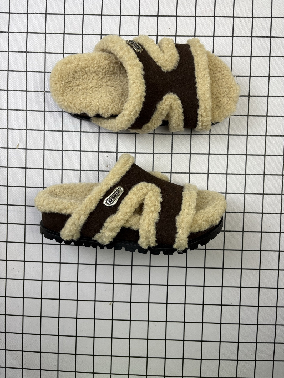💰170 【章若楠同款】GG-CC 2025 路易暖茶 秋冬新款 5.5CM 厚底增高 百搭勃肯半拖 #今天份穿搭宝藏休闲鞋子 这款毛毛拖采用了柔软的绒毛材质,搭配上经典的棕色设计,既温暖又充满时尚感。 厚实的绒毛不仅提供了极佳的保暖效果,还让你的双脚享受极致的舒适。 #冬日必入毛毛拖鞋 #GGCC 官方货号:G25Y9084 尺码:35 36 37 38 39 40 编码旭D