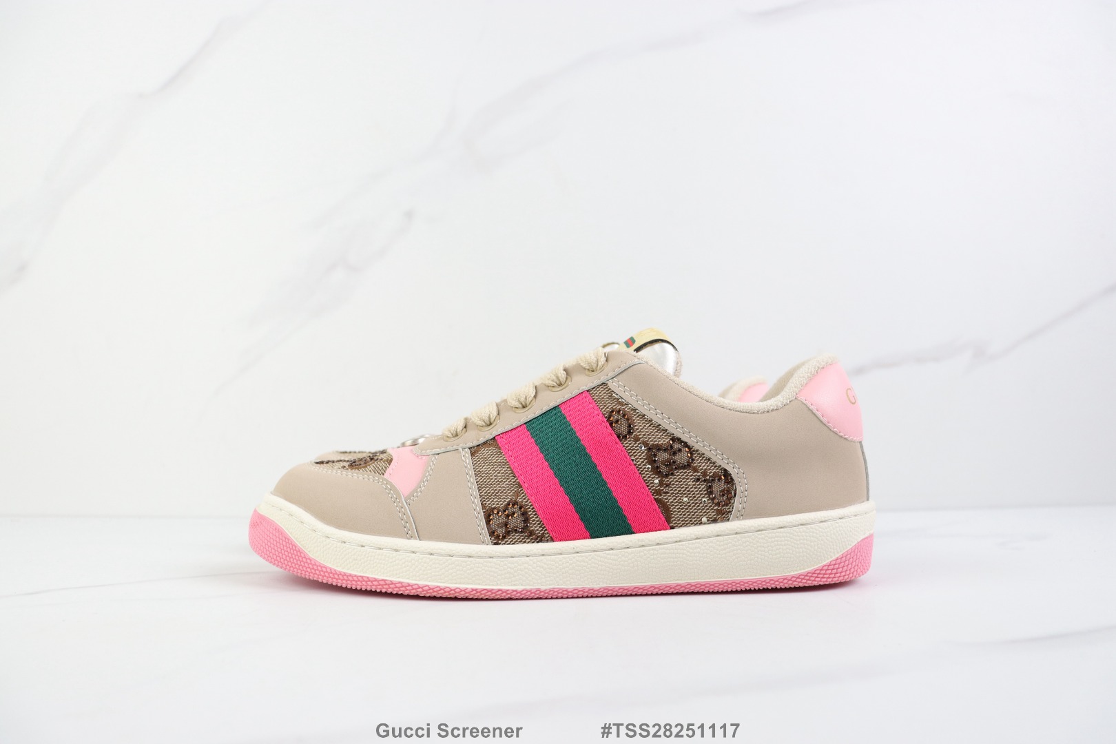 💰P140🔺Gucci Screener 古驰低帮经典复古舒适轻便休闲鞋 小蜜蜂 绿盒版本 牛皮材质 时尚舒适 Size:35-40码 #TSS28251117