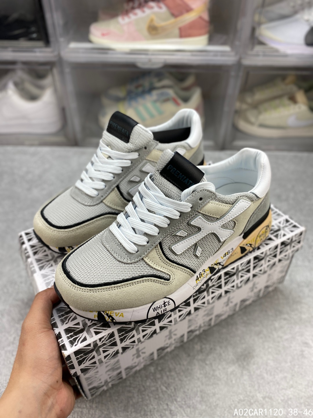 🈴️三 💰150 意大利鞋履品牌·普瑞米亚达 Premiata 低帮百搭休闲鞋 依据国际高标准制造 原单小白鞋 木字男鞋潮复古反绒皮运动休闲鞋木字鞋 鞋子简单大方 手感出众 舒适好穿又百搭 鞋子整体的外观颜值高 鞋面采用的是两种不同的材质面料拼接 鞋底侧边印了很多复古潮流印刷 是比较有个性特色的一款 鞋面材质是采用的牛反绒+牛津布+头层牛皮制作而成 鞋底材质是天然橡胶 大花纹设计防滑减震又耐磨 它的鞋垫都是头层猪皮 普瑞米亚达复古运动鞋真的又好看又好穿 很好搭配衣服 #A02CAR1120 38-46