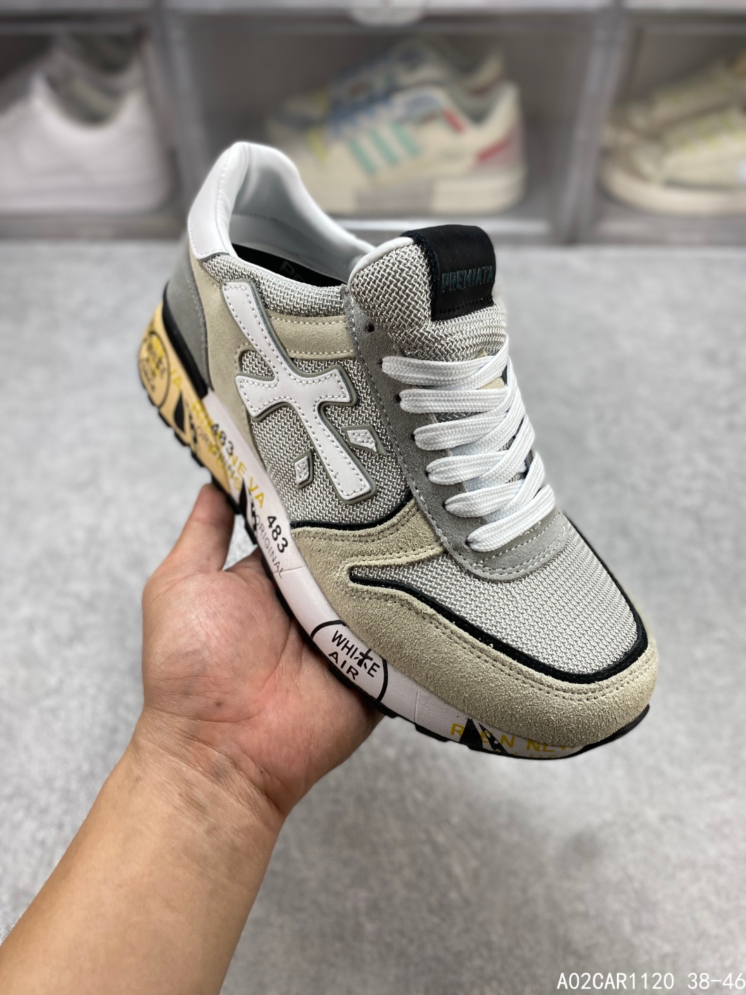 🈴️三 💰150 意大利鞋履品牌·普瑞米亚达 Premiata 低帮百搭休闲鞋 依据国际高标准制造 原单小白鞋 木字男鞋潮复古反绒皮运动休闲鞋木字鞋 鞋子简单大方 手感出众 舒适好穿又百搭 鞋子整体的外观颜值高 鞋面采用的是两种不同的材质面料拼接 鞋底侧边印了很多复古潮流印刷 是比较有个性特色的一款 鞋面材质是采用的牛反绒+牛津布+头层牛皮制作而成 鞋底材质是天然橡胶 大花纹设计防滑减震又耐磨 它的鞋垫都是头层猪皮 普瑞米亚达复古运动鞋真的又好看又好穿 很好搭配衣服 #A02CAR1120 38-46