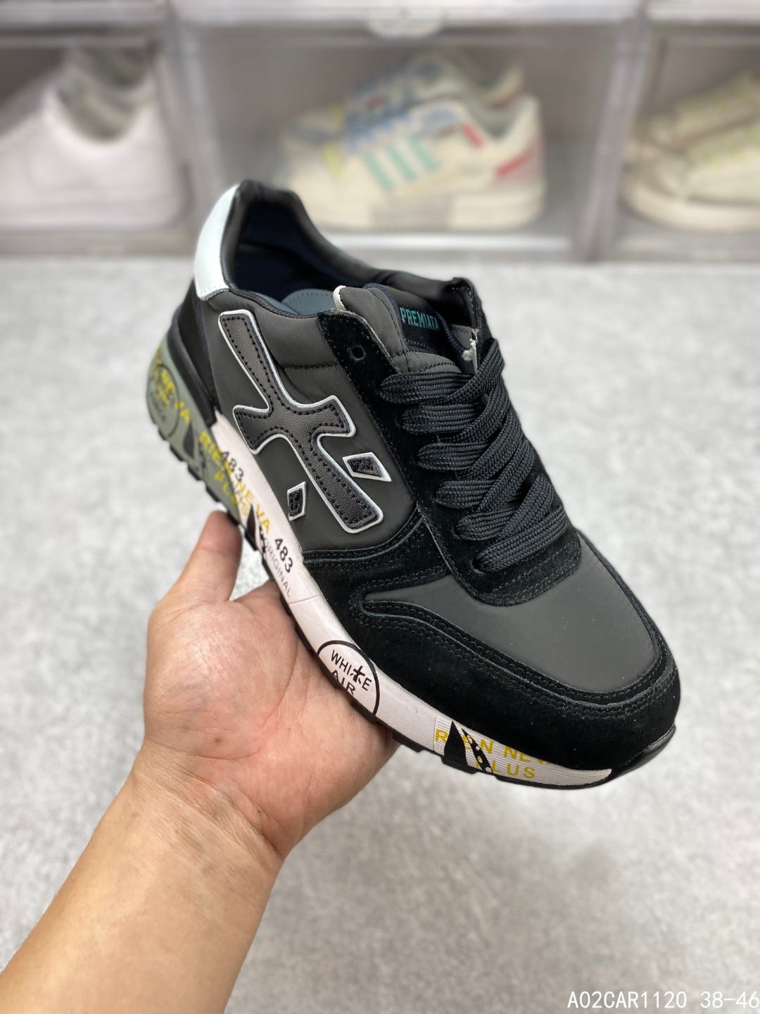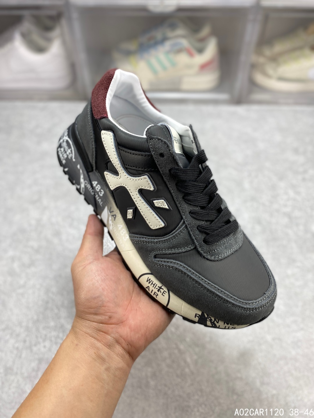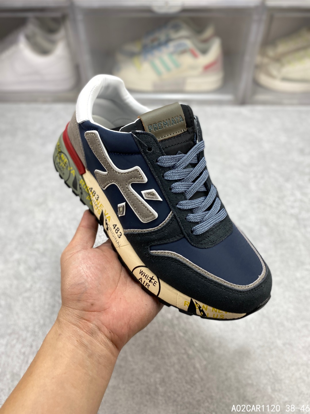 🈴️二 💰150 意大利鞋履品牌·普瑞米亚达 Premiata 低帮百搭休闲鞋 依据国际高标准制造 原单小白鞋 木字男鞋潮复古反绒皮运动休闲鞋木字鞋 鞋子简单大方 手感出众 舒适好穿又百搭 鞋子整体的外观颜值高 鞋面采用的是两种不同的材质面料拼接 鞋底侧边印了很多复古潮流印刷 是比较有个性特色的一款 鞋面材质是采用的牛反绒+牛津布+头层牛皮制作而成 鞋底材质是天然橡胶 大花纹设计防滑减震又耐磨 它的鞋垫都是头层猪皮 普瑞米亚达复古运动鞋真的又好看又好穿 很好搭配衣服 #A02CAR1120 38-46