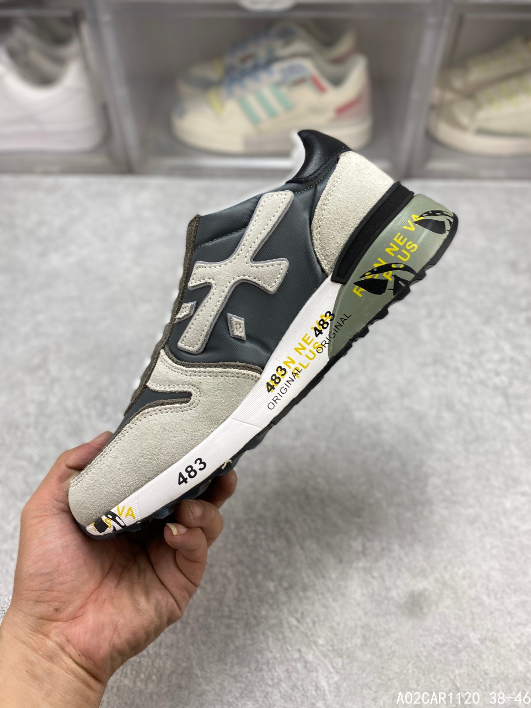💰150 意大利鞋履品牌·普瑞米亚达 Premiata 低帮百搭休闲鞋 依据国际高标准制造 原单小白鞋 木字男鞋潮复古反绒皮运动休闲鞋木字鞋 鞋子简单大方 手感出众 舒适好穿又百搭 鞋子整体的外观颜值高 鞋面采用的是两种不同的材质面料拼接 鞋底侧边印了很多复古潮流印刷 是比较有个性特色的一款 鞋面材质是采用的牛反绒+牛津布+头层牛皮制作而成 鞋底材质是天然橡胶 大花纹设计防滑减震又耐磨 它的鞋垫都是头层猪皮 普瑞米亚达复古运动鞋真的又好看又好穿 很好搭配衣服 #A02CAR1120 38-46