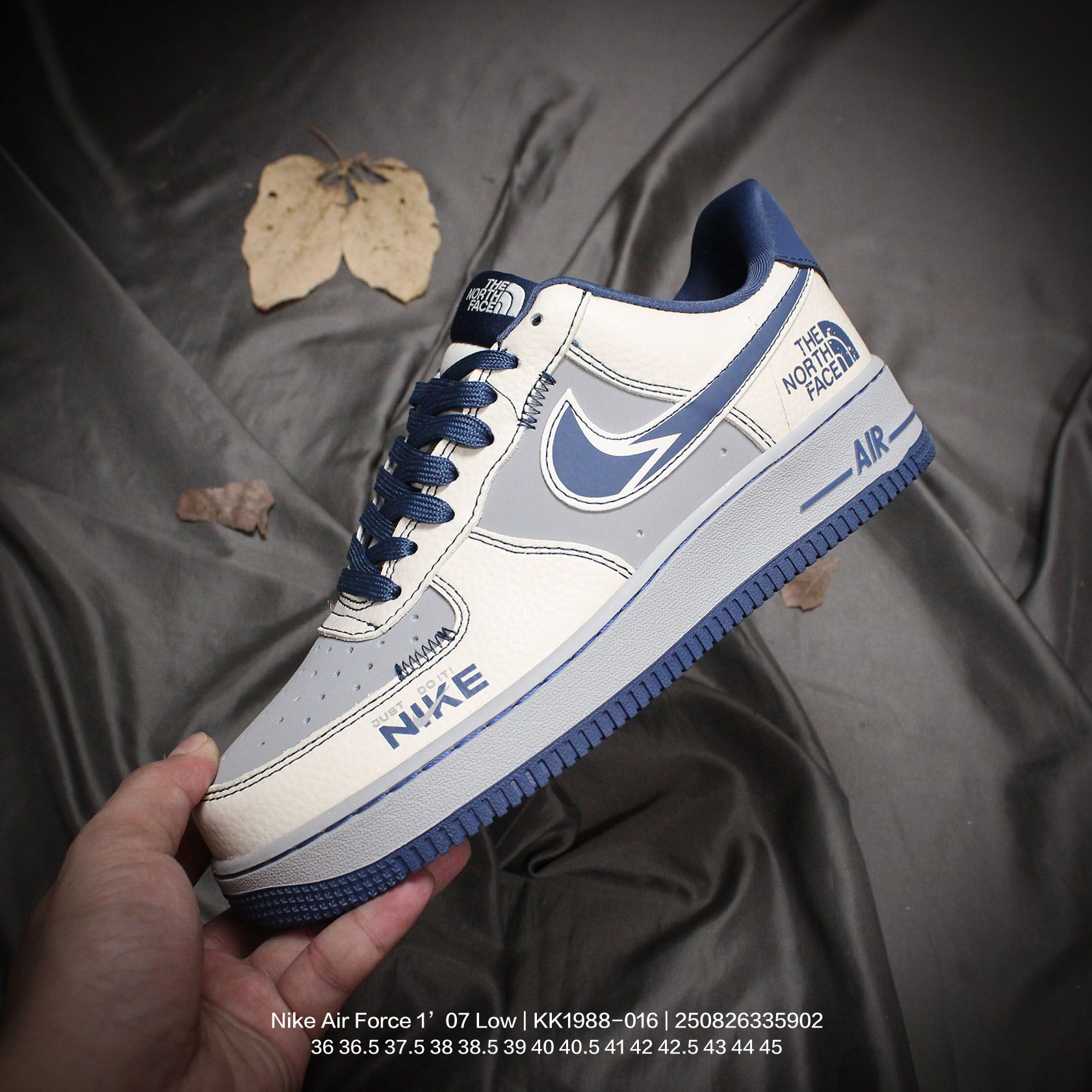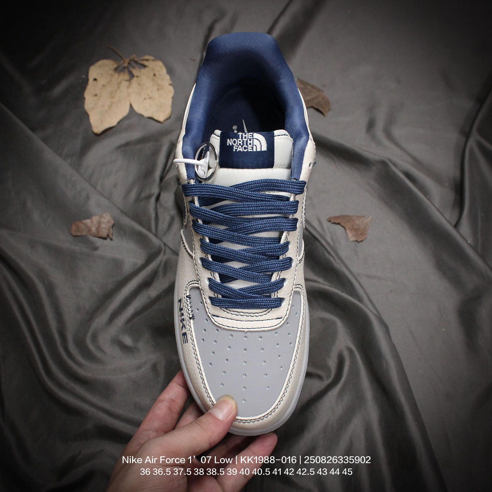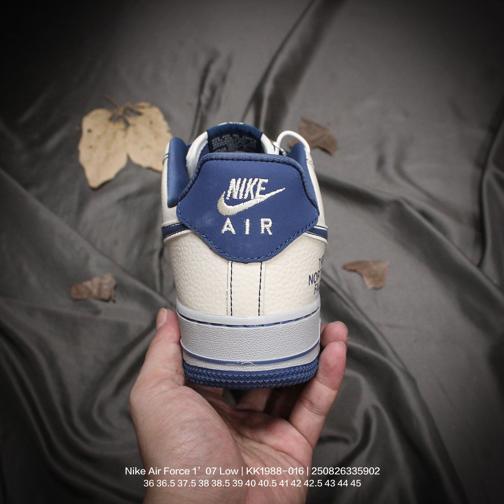 💰120 Nike/耐克 男女鞋真标半码制,原楦原纸版数据开发版型,采用荔枝纹牛剖革鞋面材质,内置全掌Air Sole气垫❗创意定制联名,著名户外品牌·北面/The North Face x Nike Air Force 1’07 Low"TNF"空军一号经典低帮百搭休闲运动板鞋“联名米白泥灰藏蓝印标 KK1988-016 类型:男女鞋 码数:36 36.5 37.5 38 38.5 39 40 40.5 41 42 42.5 43 44 45 编码:250826335.902