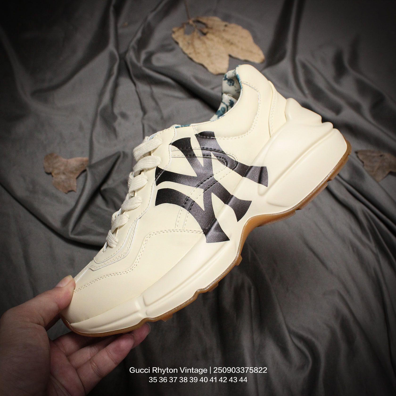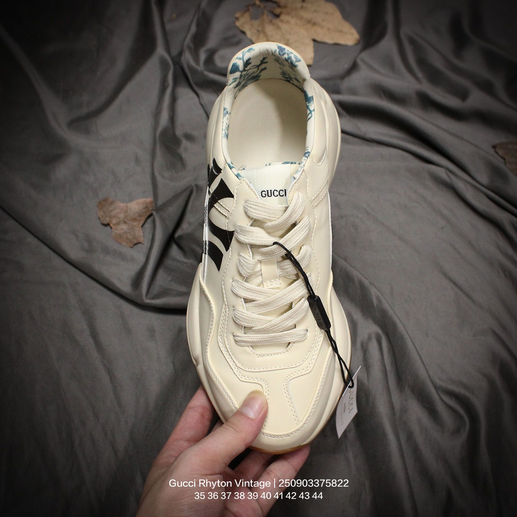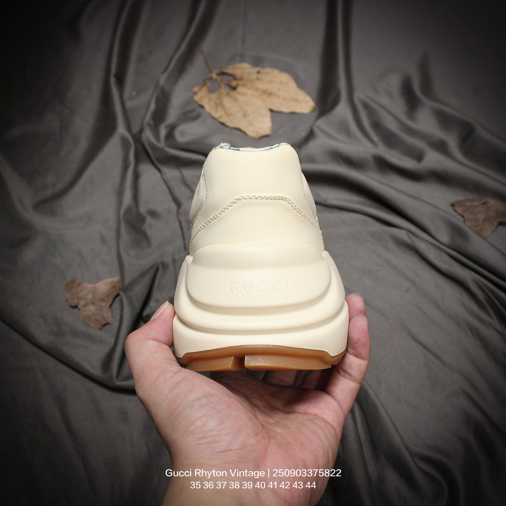 💰160 GUCCI/古驰 男女鞋广东原产,采用进口意大利超软小牛皮鞋面材质,同源一致真丝绸防尘鞋套袋,原装雪梨形超软沙绒纸团,原比值数据开发高弹PU材质中底+双层TPR无缝隙串色技术组合大底 意大利时装奢饰品牌·古驰Gucci Rhyton Vintage"Tigger"皮革角状复古老爹休闲运动慢跑鞋 类型:男女鞋 码数:35 36 37 38 39 40 41 42 43 44 编码:250903375.822