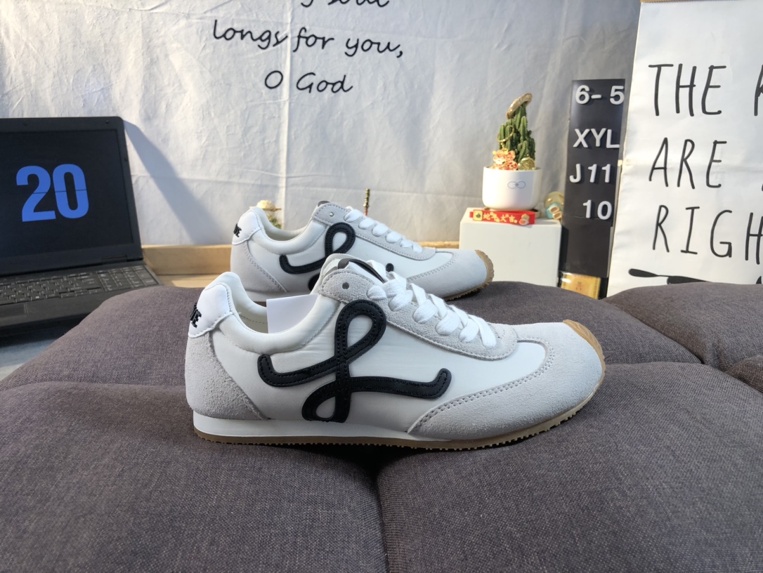 🈴️💰130🉐️ 采用翻毛皮拼接牛津布鞋面材质,外部搭配RB橡胶防防滑耐磨大底❗️西班牙百年皮具奢华品牌/罗意威Loewe Ballet Runner 2.0 Sneakers 芭蕾舞2.0系列阿甘复古风德训薄底百搭休闲运动鞋“ 码数:36 37 38 39 40 41 42 43 44 45。 65XYLJ1110