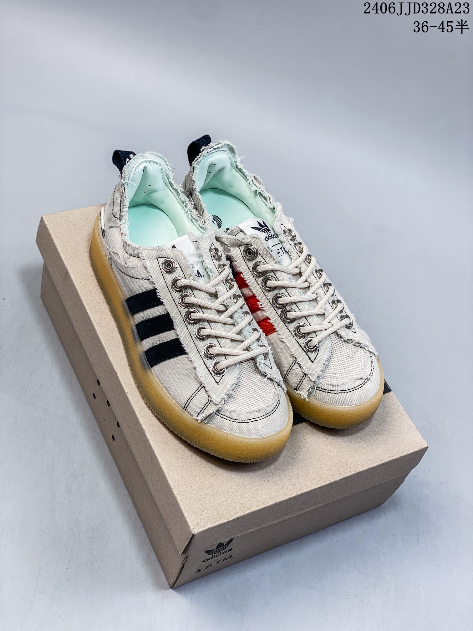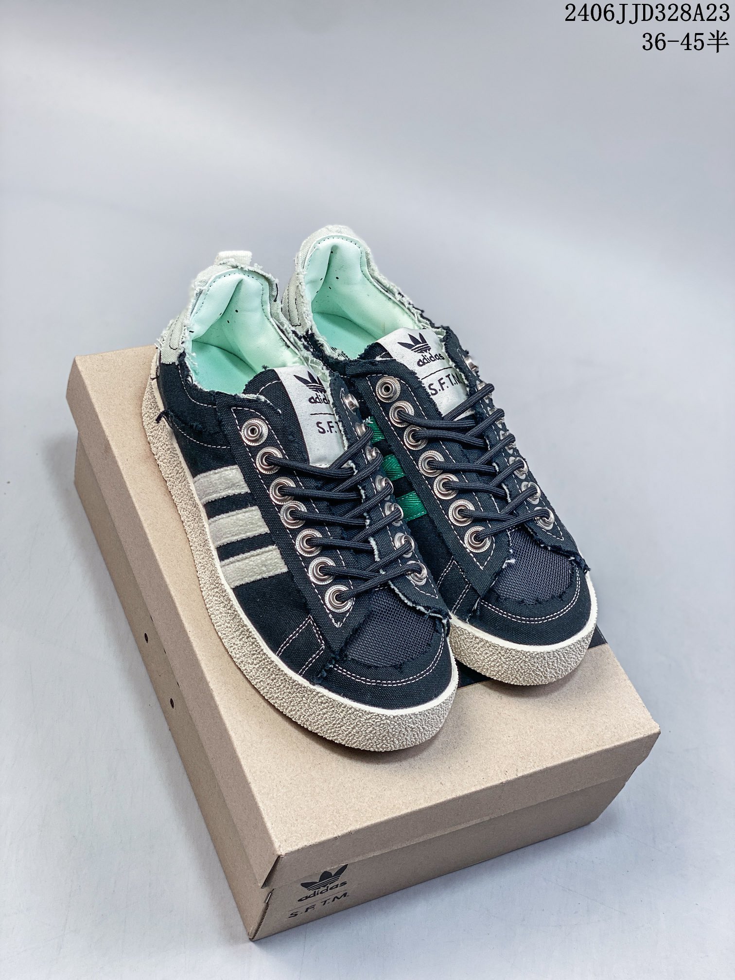 🈴💰120 ID:xnm Adidas adidas Campus 80S x SONG FOR THE MUTE 最新联名复古破坏工艺帆布鞋 上架实拍原版开发版型,外置耐磨防滑橡透明胶底,不对称配色设计,毛巾面料的三条杠和后跟提环,破坏毛边的做旧设计,纽扣式鞋带孔,细节和质感拉满,满满时尚感