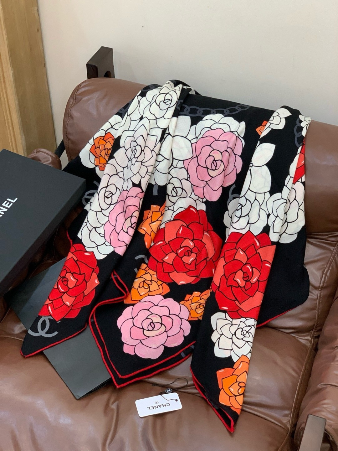 P230 香奈儿上新❤️ 【Chanel】 经典茶花优雅Coco风,Chanel最新丝绒大方巾~气质到骨子里,香奶奶新一季的面料超高级,真心超级柔软,丝丝顺滑,韧性很强 不容易被轻易勾丝!今年新出的系列~真的被这样的设计美到,香奈儿家的丝巾绝对是优雅的代表,一条小香的丝巾,给你最好的搭配!! 必入!上身效果简直优雅气质到不行,非常灵动.层次优雅质感.层层叠叠出醒目而不张扬的华丽名媛感,香粉必入 140*140cm 的尺寸,上身效果真的不用多说的美(搭配服饰鞋包更有感觉)!实物绝对更美!经典黑白色