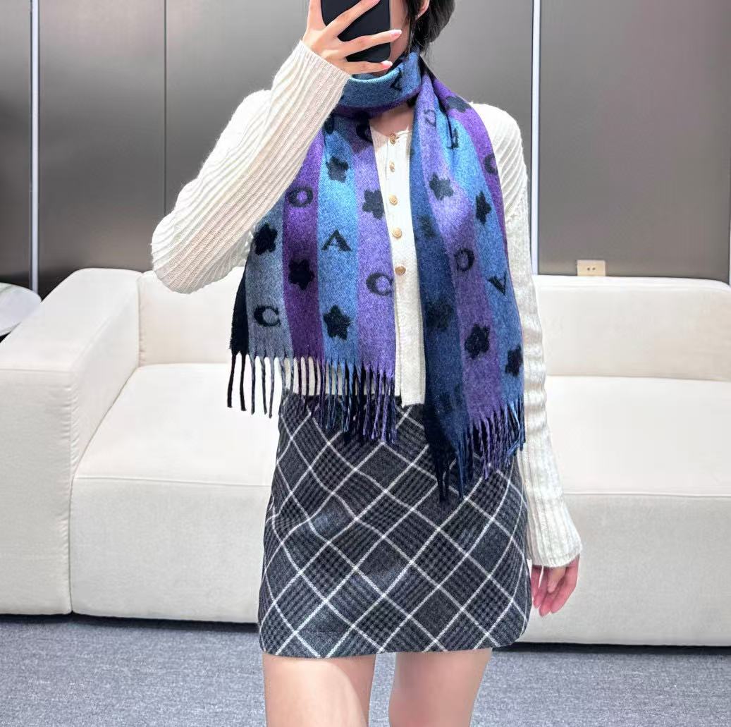 P140 2025年Coach 最新款小花围巾, 🌸太好看了‼️COACH 小花披肩围巾 秋冬新款羊毛披肩围巾双面都可以搭配哦👍100%棉羊毛,尺寸183x31cm🇺🇸✈️