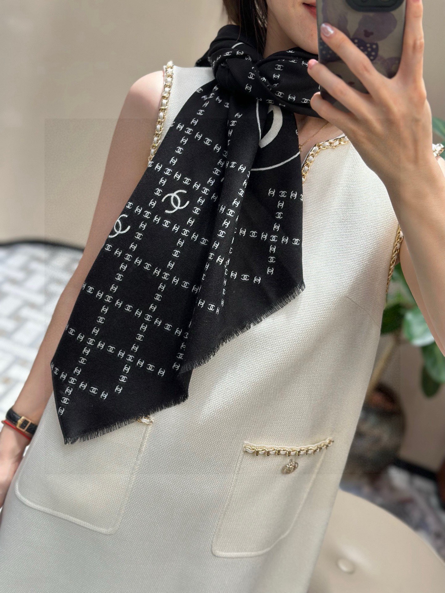 P185 新款💖💖💃🏻💃🏻小香【双C标志网格方巾140】须边羊绒方巾‼️抢‼️VIP推荐 ‼️👍下手一定要快【高端 大爱 ‼️纯羊绒 婴儿触感舒服到飞❤️女人尤物 货极少 四季都可以用‼️真心美的让人非常非常心动 上身效果简直美翻了 品质非常完美👍‼️ 整个围巾给人大牌气场的同时又非常精致秀丽💟绝对值得入手的新款💟‼️ 实物一拿到就会庆幸自己是女人的绝美好货😂 值得品鉴‼️完美气质品味Ditails首选👍VIP们 上‼️🌟尺寸:140*140cm,100%羊绒