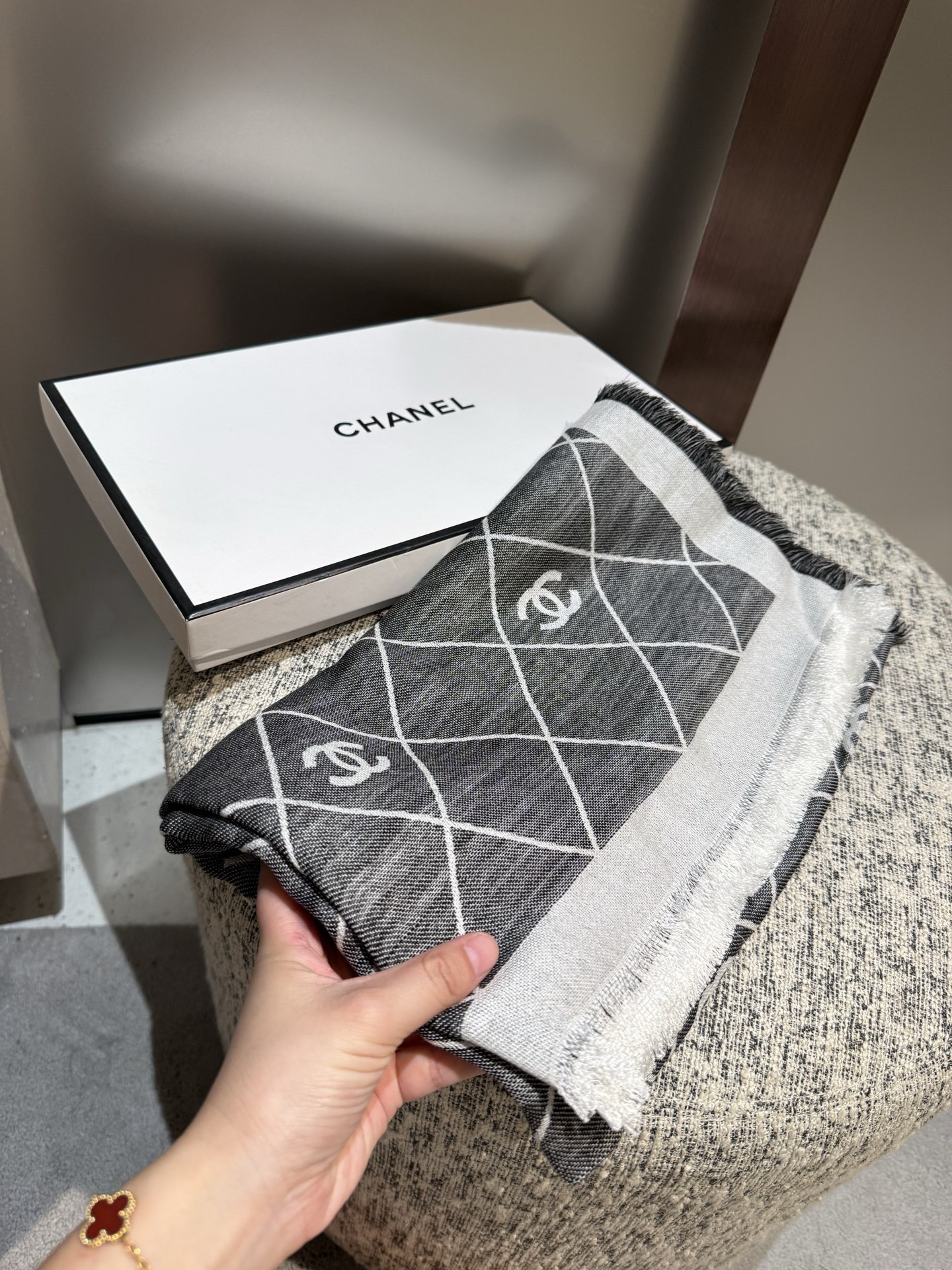 P190 P黑灰色 2025最爆火的chanel 菱格披肩,双面设计体验不同风格穿搭,永远不会过时的经典,根本抢不到! 经典菱格的包包已经成为香家历代经典不可替代的标志性图纹 这款菱格围巾 更是经典中的的高贵出品 每一个品牌的logo后面都有一个属于自己的故事和背景 ,一个品牌的logo也给人们带来对品牌的印象和感受,能做到经典而深入人心才是真正的成功 香家经典而简洁的双Clogo更是新时代女性的代表! 这款披肩绝对是经典风格之一 ,无论搭配什么色调的大衣都是大气时尚,这种经典的东西可遇不可求。双面提花的工艺难度之大费料之多‼️妥妥的且收且珍惜的节奏!140*140cm 40%羊毛,32%真丝,28%羊绒!