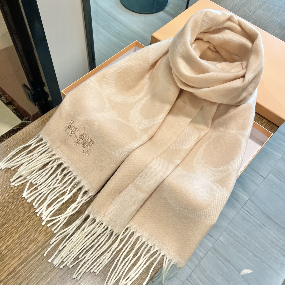 P135 高版本✨【经典款】COACH经典 蔻驰披肩也太好看了吧!不仅有颜值还有品质,羊绒,手感超级软糯和舒服,尺寸195×53cm,整体宽度还可以,算是个小披肩。正反面做的互补色,一面是深色logo搭配浅色底,另一面是相反色,温温柔柔的感觉围巾一定要冲这一条!