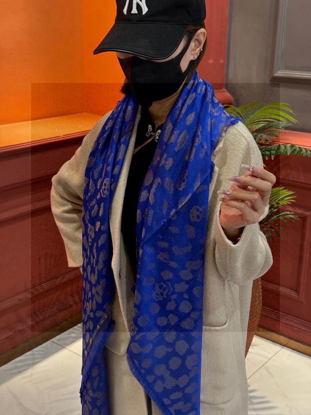 P155 超美的鬼头Logo~防冷气又时髦的单品💋麦昆 新品.永远都不会嫌多的款~❣️MCQ麦昆永恒经典的骷髅头‼️太多明星网红街拍了~时髦和气质兼具,驾驭多种穿衣风格❤️有多实用就不多说了,实物非常精致,色彩很有水头,轻薄的感觉非常舒适.夏天旅游空调房必须来条.冬天更美.手慢无🌟 方巾🎀规格:140cm