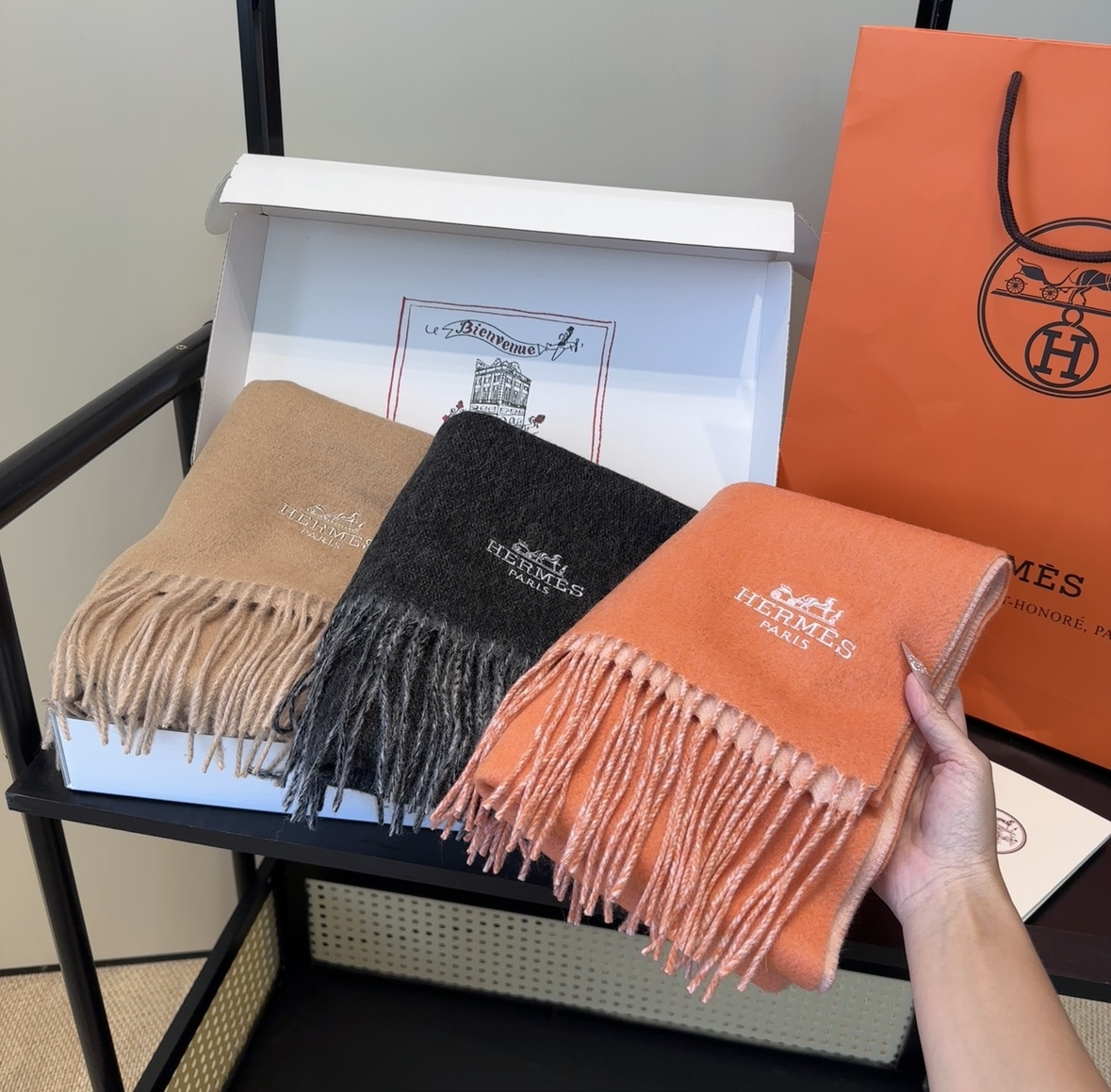 P 145 【▪️家属福利来了!!爱马仕高端重磅男士围巾!】怒赞推荐,激动~!!下手绝对要快,同步专柜,最高端的男士款~工艺难度大,超级无敌软糯 渐变效果围巾!我们这个价格真的无敌超值!亲妈价格回馈~面料大爱,握在手里绒感真的超级无敌舒服!非常柔软,上身效果无敌好看‼️ 中等厚度,非常亲脖子的一款~ 尺寸规格30*185cm