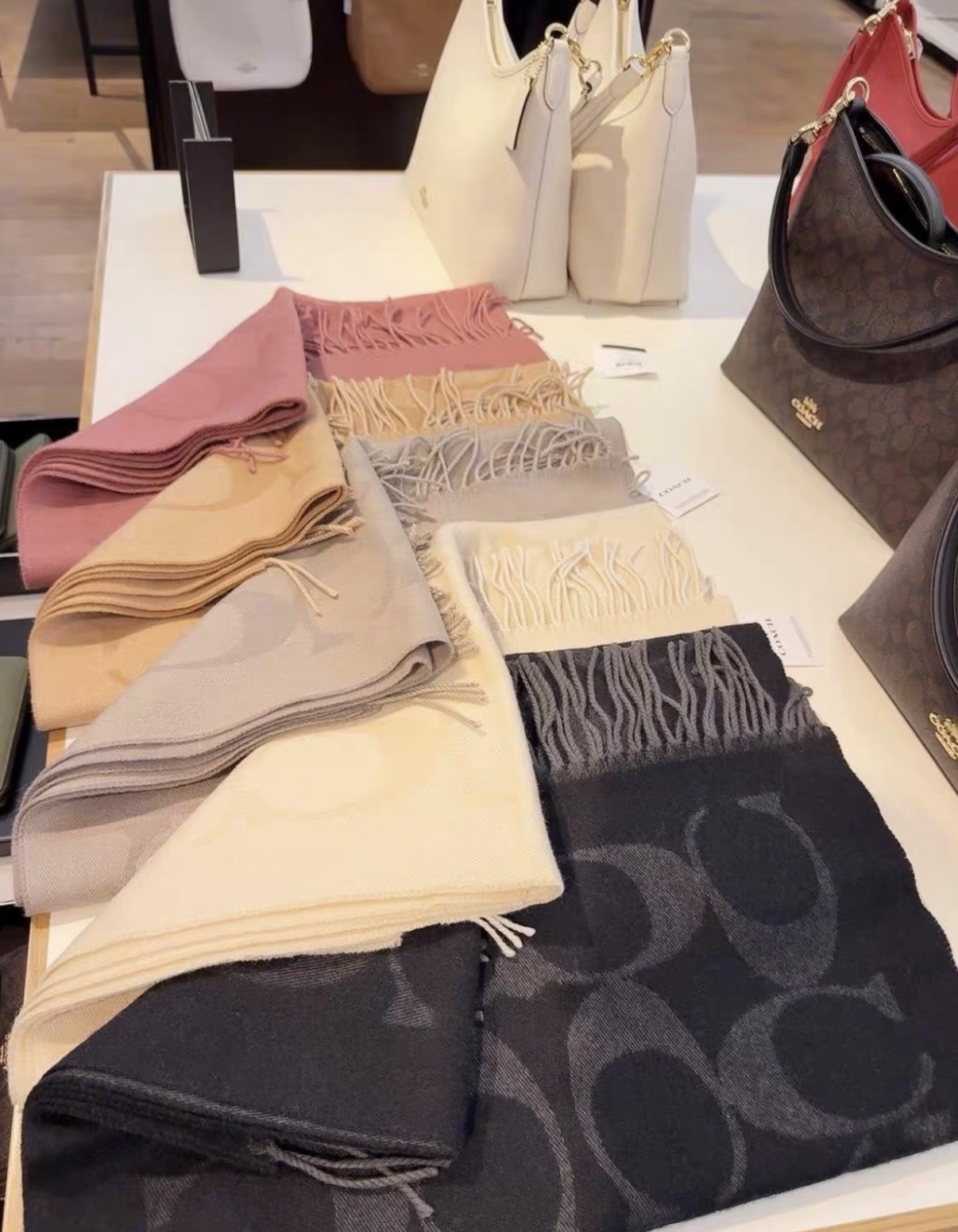 P145 P蔻驰 2025年新款到!Coach爆款!6色披肩也太好看了吧!不仅有颜值还有品质,手感超级软糯和舒服,尺寸195×53cm,整体宽度还可以,算是个小披肩。正反面做的互补色,一面是深色logo搭配浅色底,另一面是相反色,秋冬围巾一定要冲这一条!.