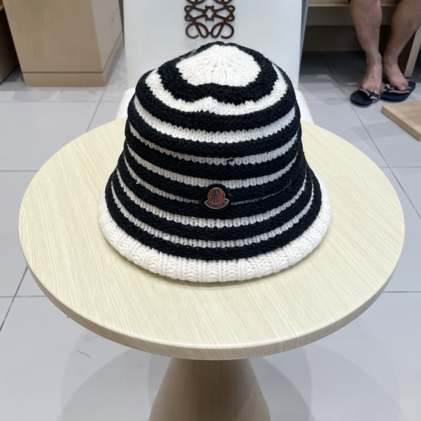 P85 蒙口Moncler盟可睐复古条纹针织渔夫帽子女2025新款秋冬百搭显脸小水桶帽盆帽潮