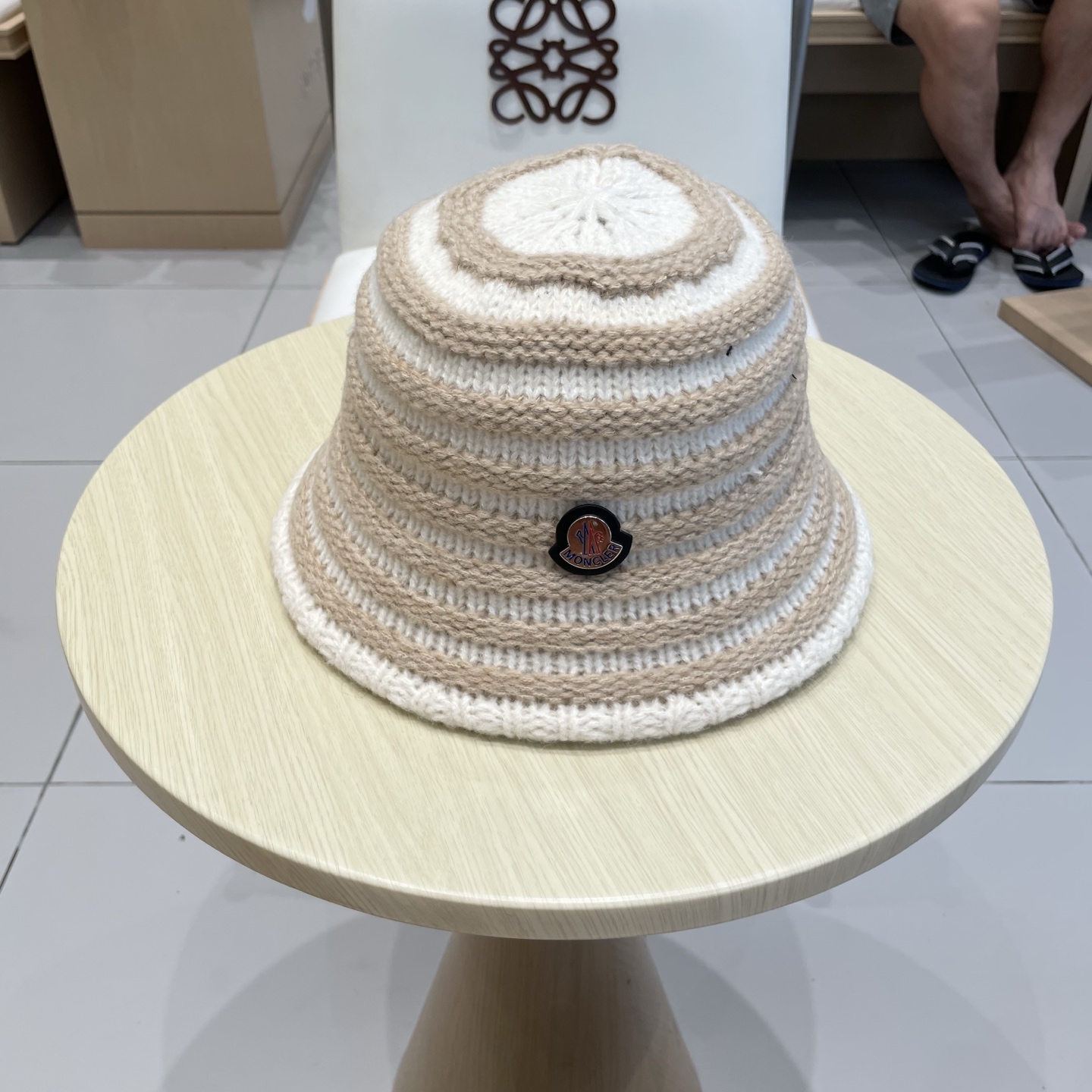 P85 蒙口Moncler盟可睐复古条纹针织渔夫帽子女2025新款秋冬百搭显脸小水桶帽盆帽潮