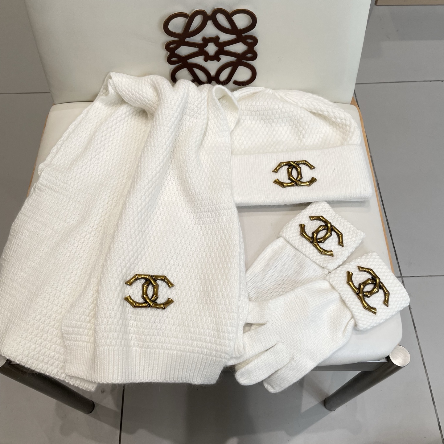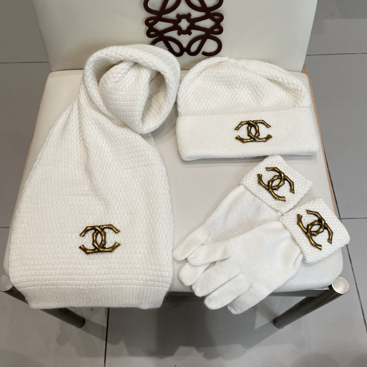 P230Chanel香奈儿【羊毛三件套套装】帽子➕围巾➕手套!经典套装帽子!暖暖哒超级舒服~冬日小姐姐减龄神器哦~这个冬天你就差这么一套套装帽子啦~又保暖又时尚!男女通用款!可以做情侣款!防伪标签吊卡齐全!多多款式,欢迎选择!