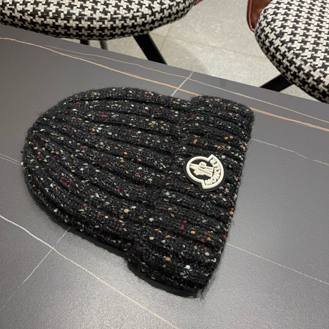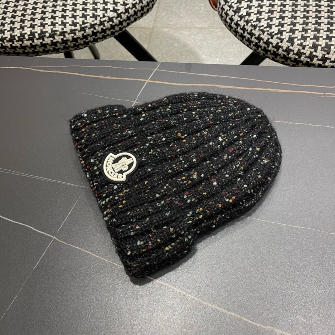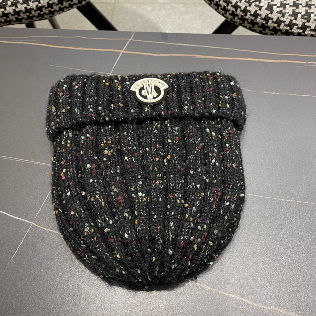 p75 MONCLER蒙口简约纯色卷边麻花造型防寒保暖针织帽男女休闲护耳包头毛线帽