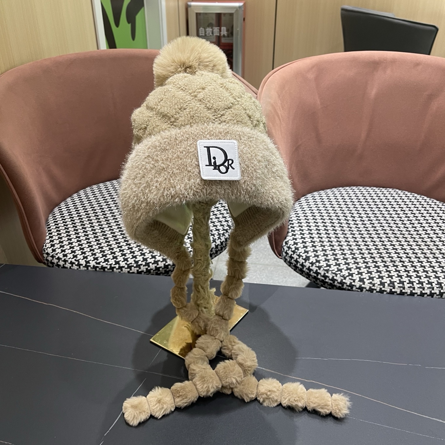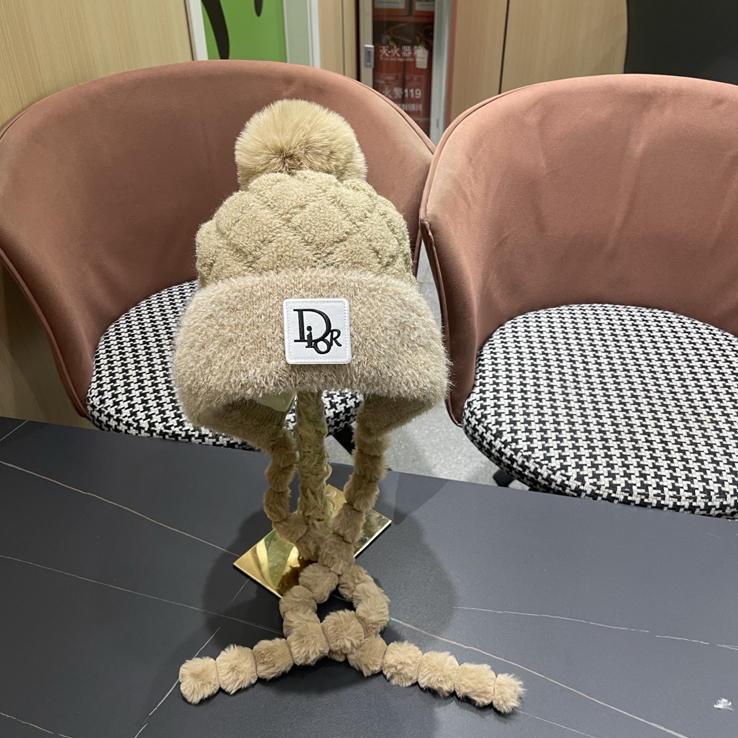p80 Dior迪奥 韩版毛球加绒保暖护耳帽女冬季户外骑车防寒包头帽时尚百搭雷锋帽